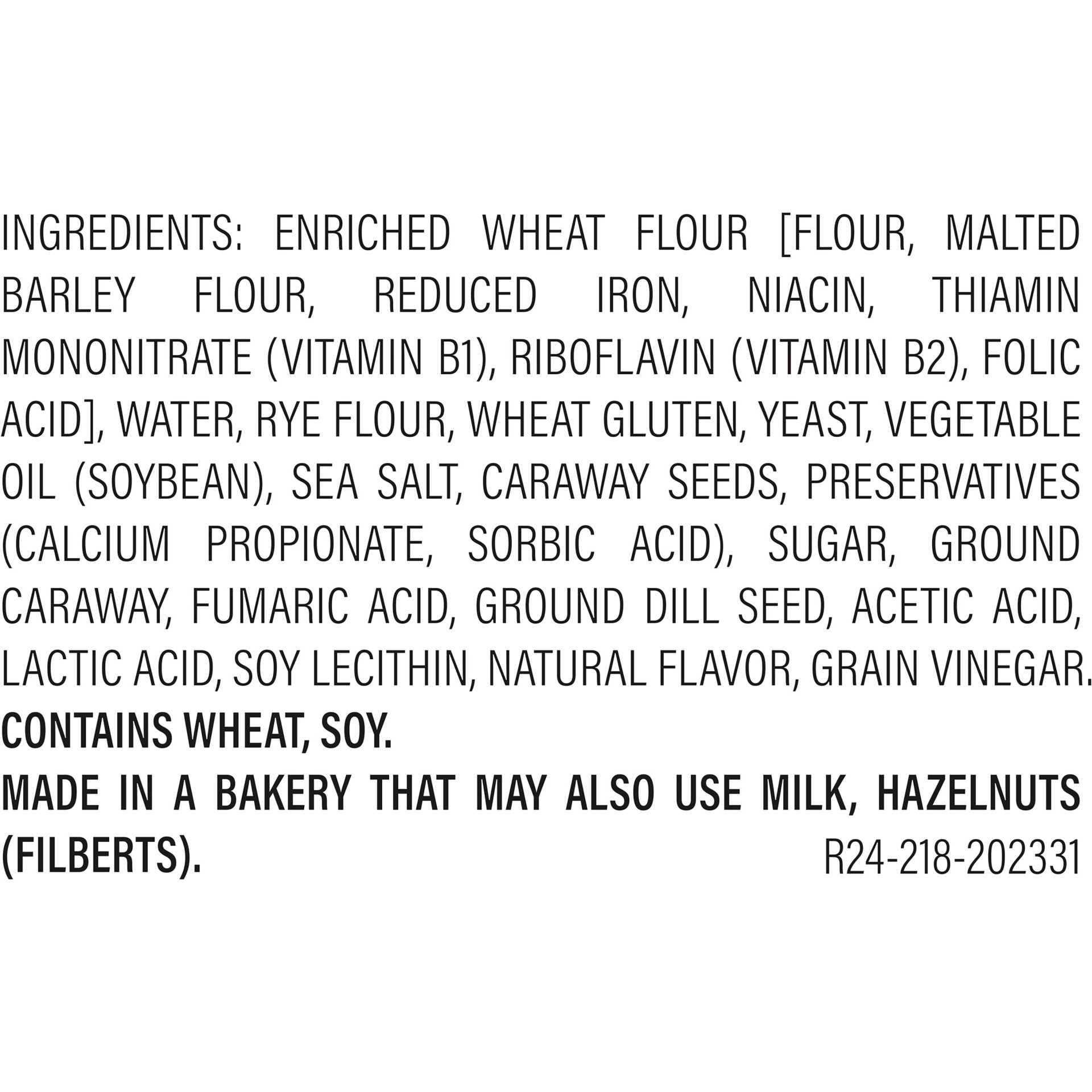 Enriched Wheat Flour [Flour, Malted Barley Flour, Reduced Iron, Niacin, Thiamin Mononitrate (Vitamin B1), Riboflavin (Vitamin B2), Folic Acid], Water, Rye Flour, Wheat Gluten, Yeast, Vegetable Oil (So…