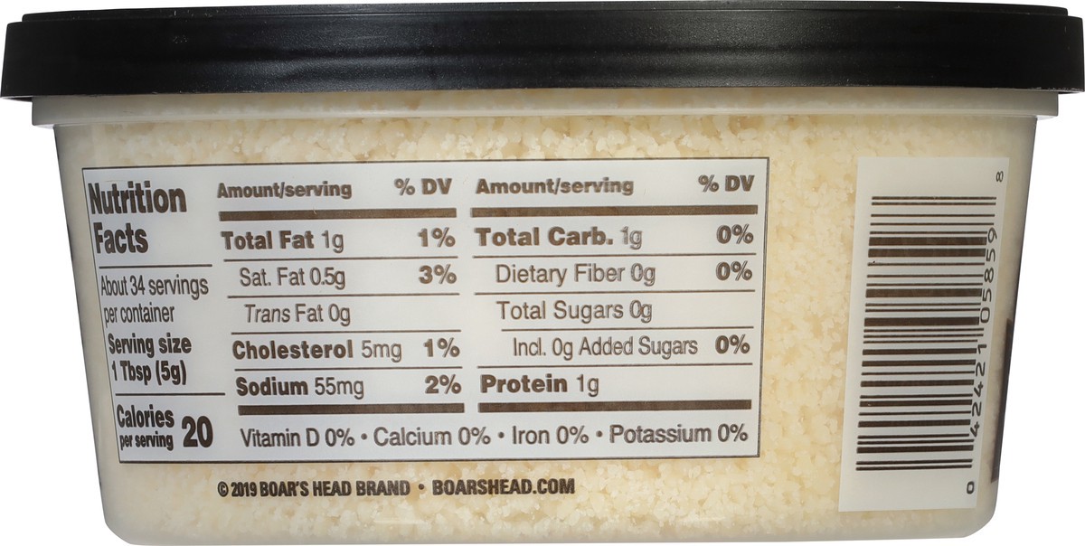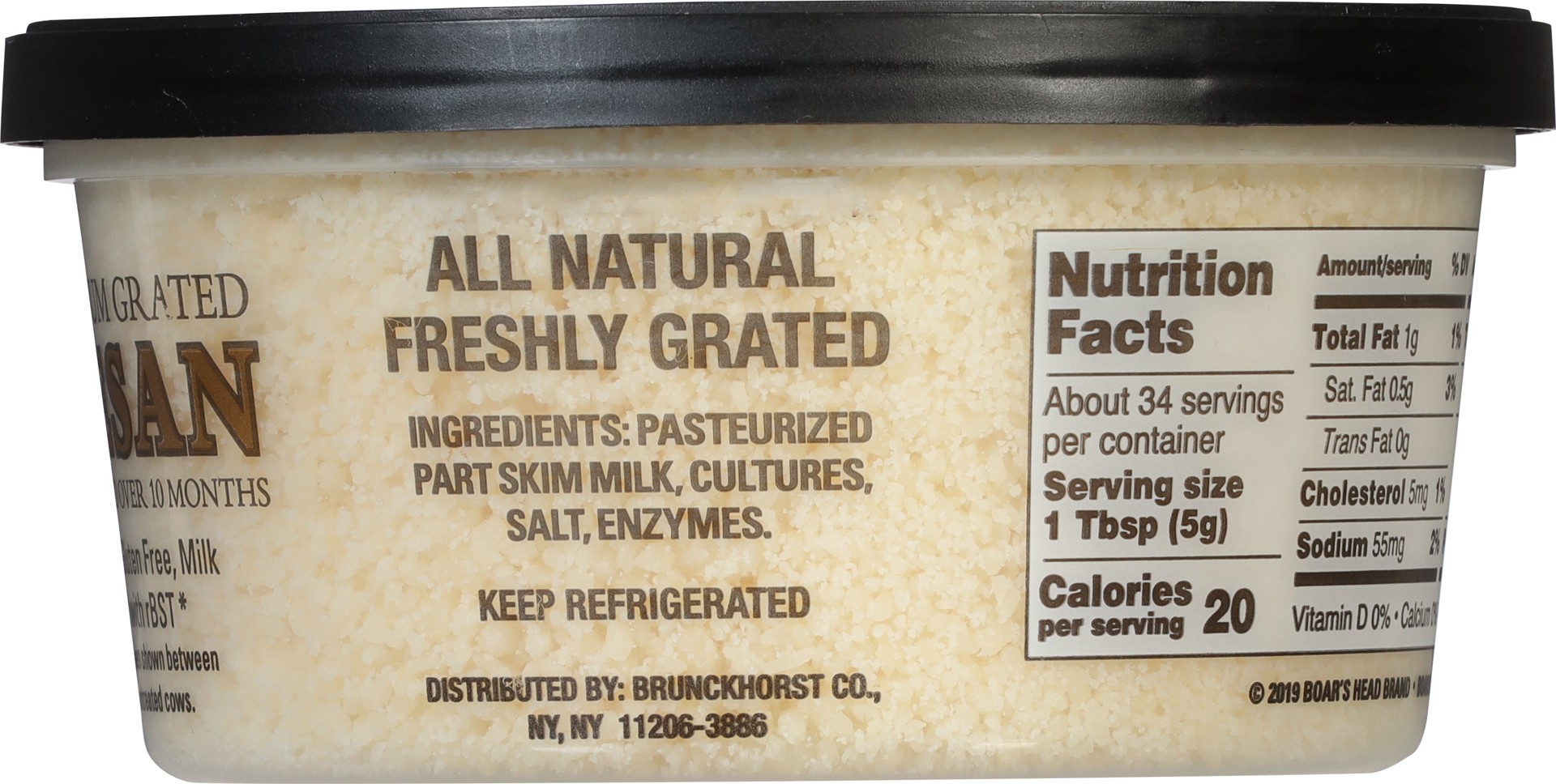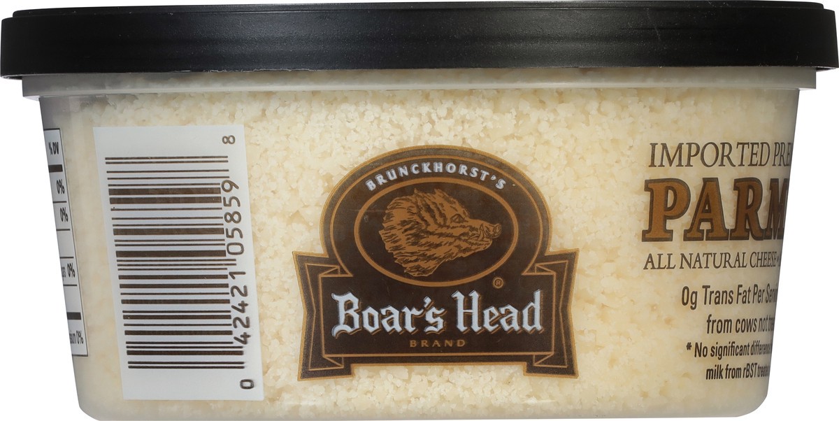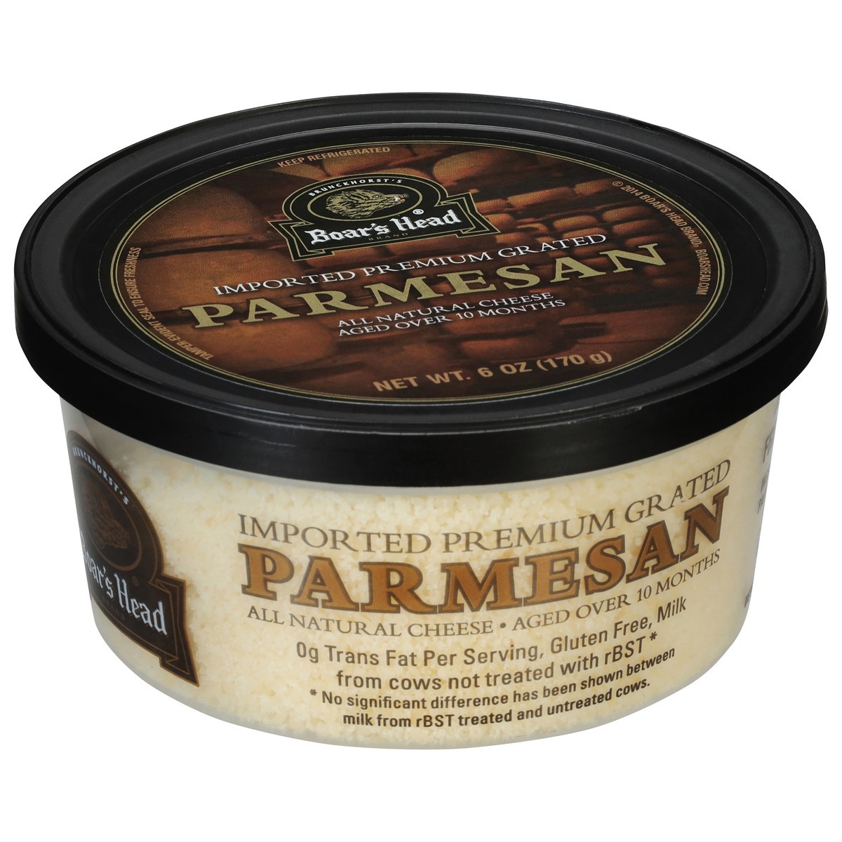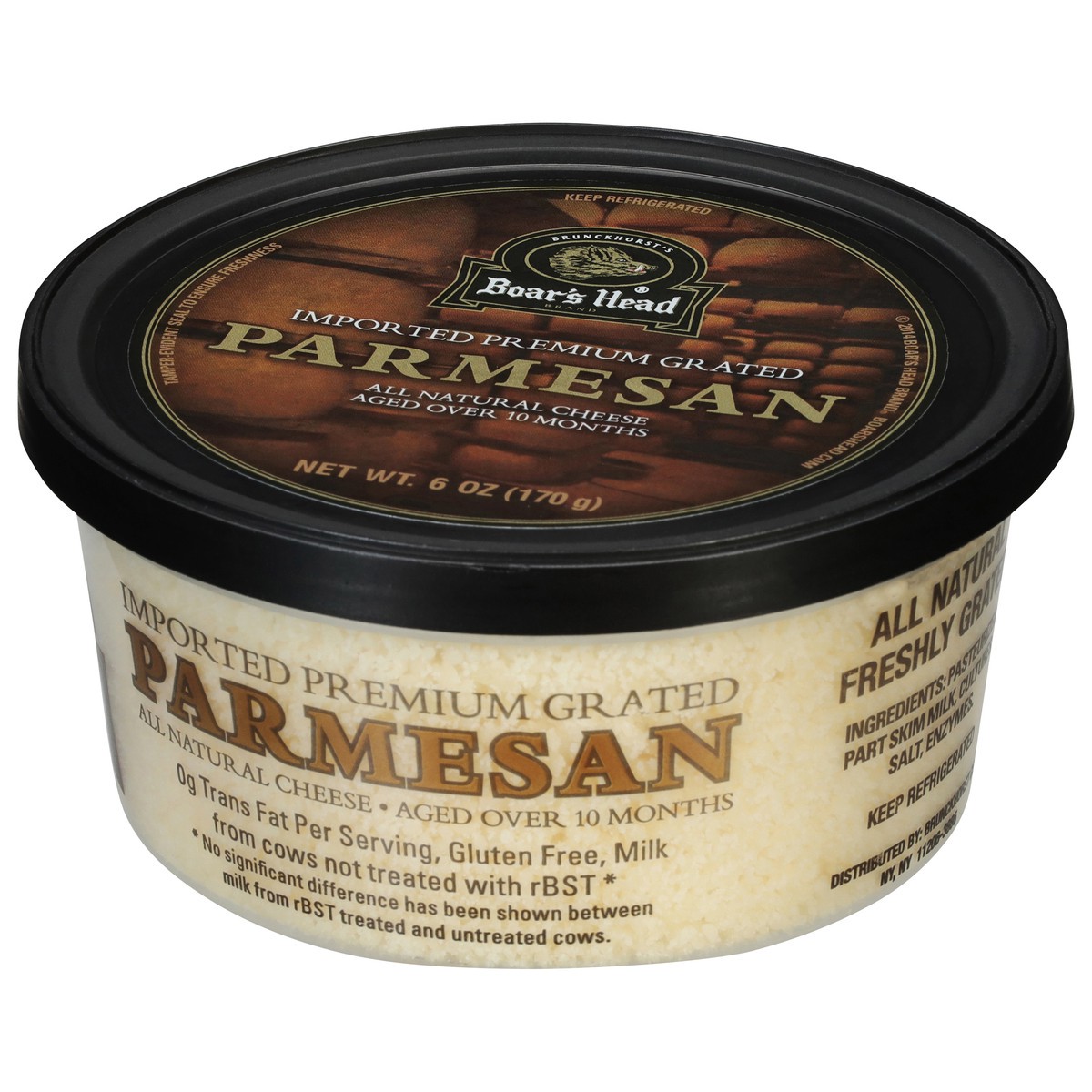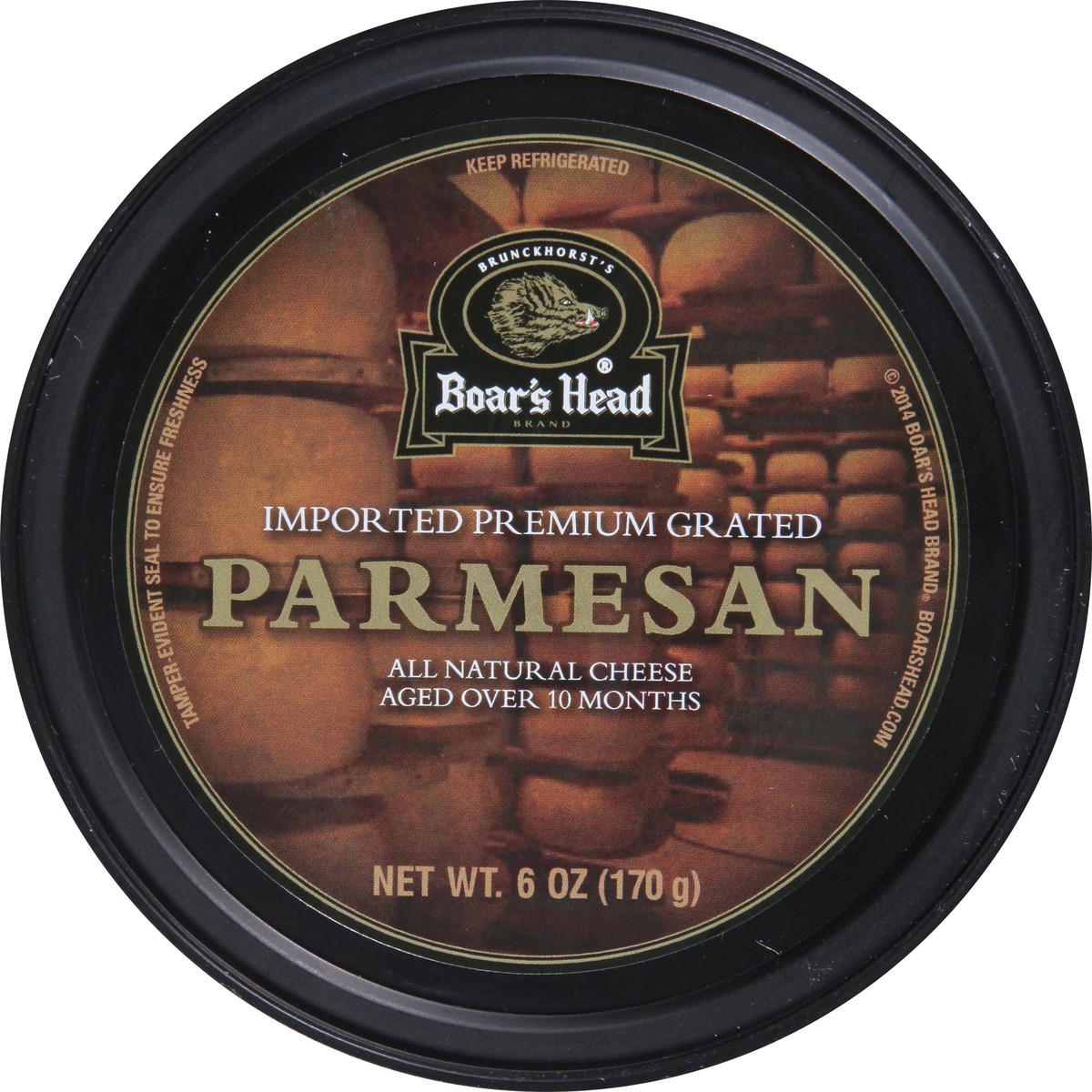 Sharp with fruity, nutty notes, this cheese has a full-bodied, complex flavor. Boar's Head Grated Parmesan Cheese is aged for more than 10 months to fully develop the flavor and granular texture and g…