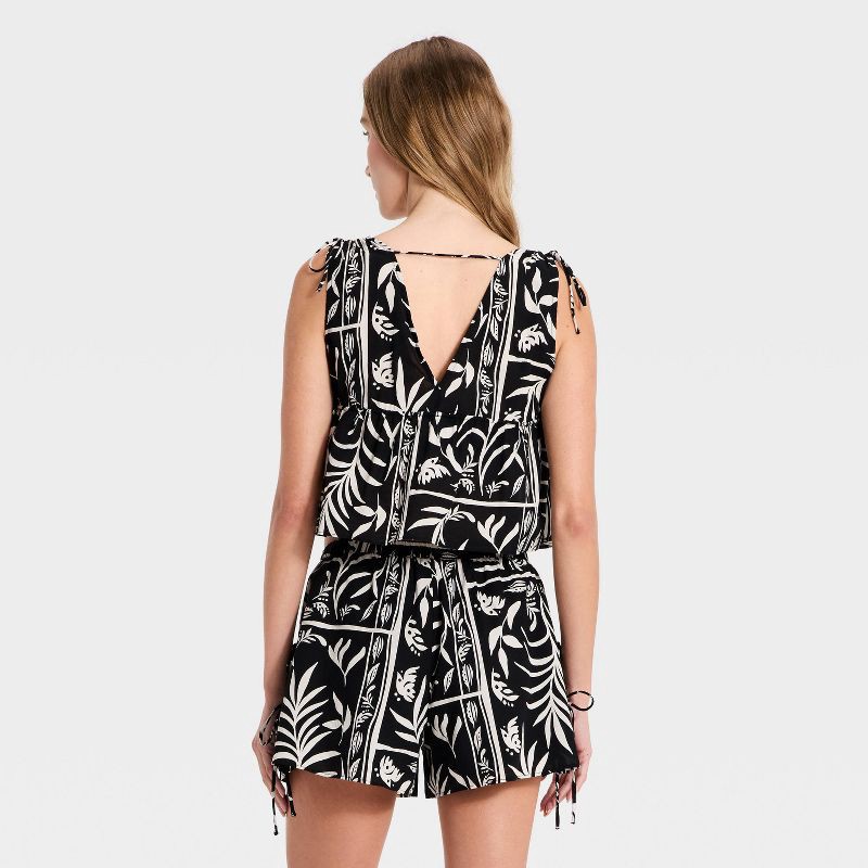 Women's Beachy Keen V-Neck Tie Top - A New Day™ Black/White M