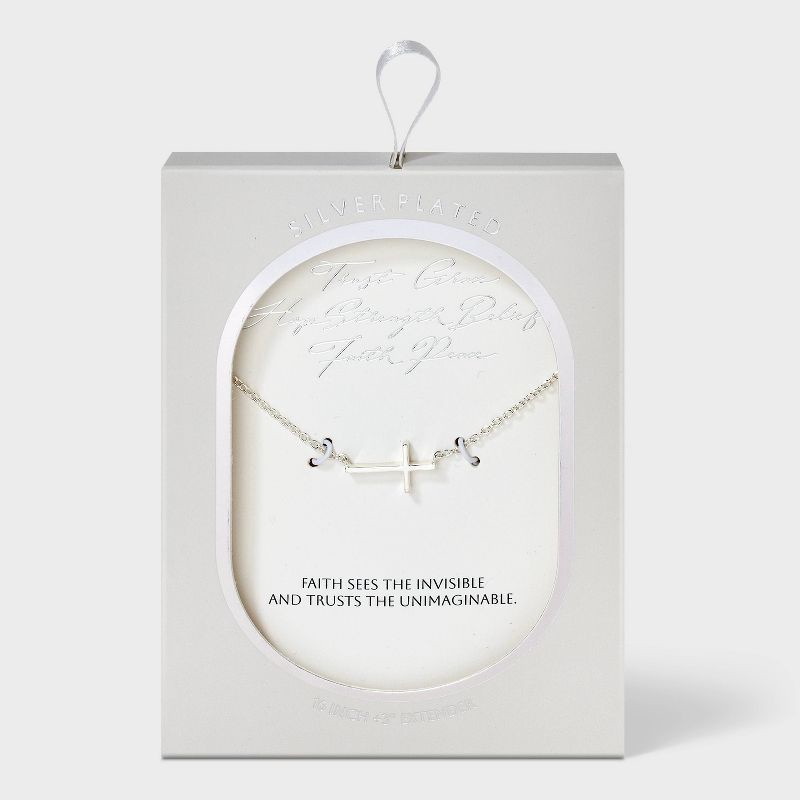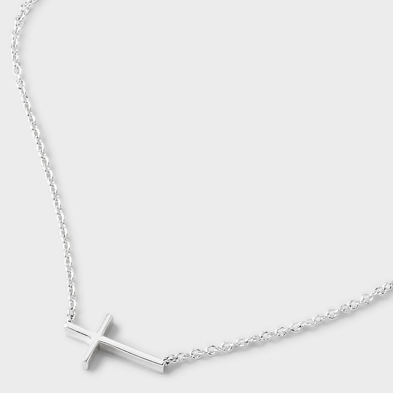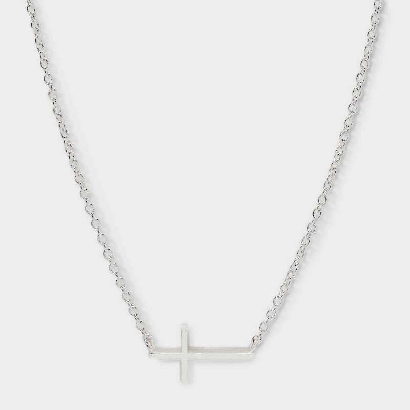 Add a little shine to your day with this Silver Plated Cross Necklace - A New Day™ Silver. The simple cross pendant design makes it easy to pair with anything from casual tees to flowy dresses. Whethe…