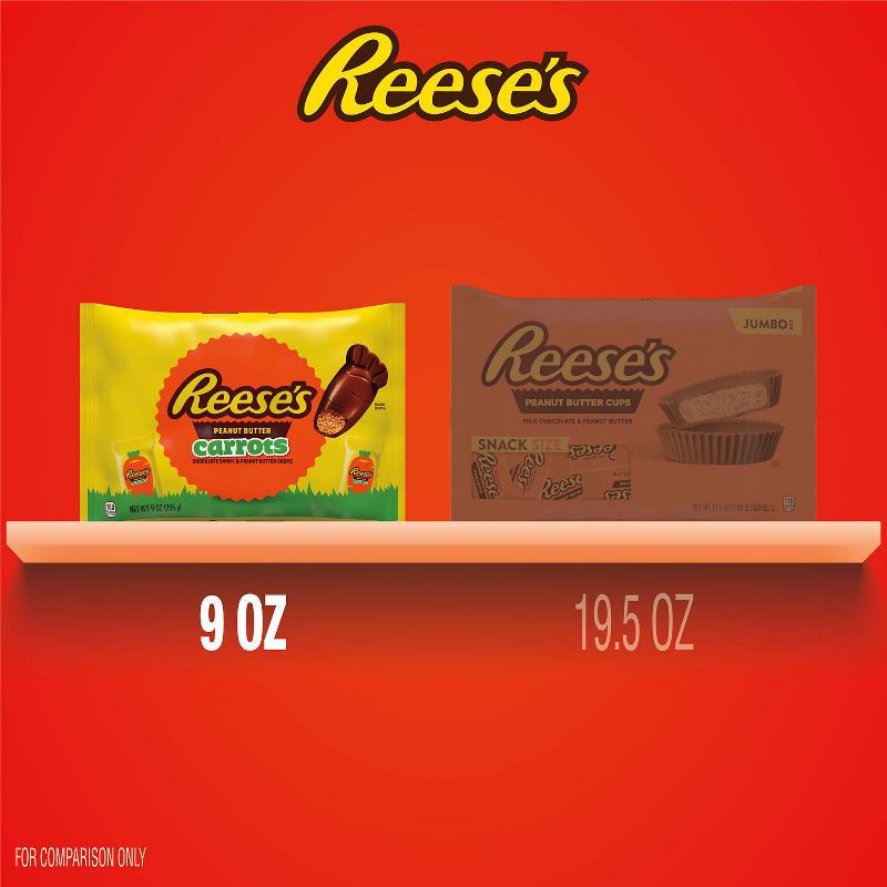 - Contains one (1) 9-ounce bag of REESE'S Chocolate Peanut Butter Creme Carrots Candy