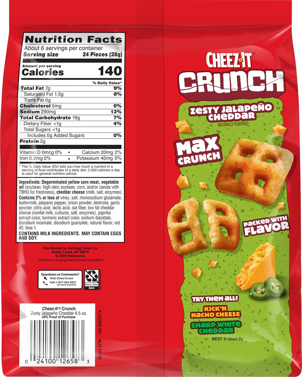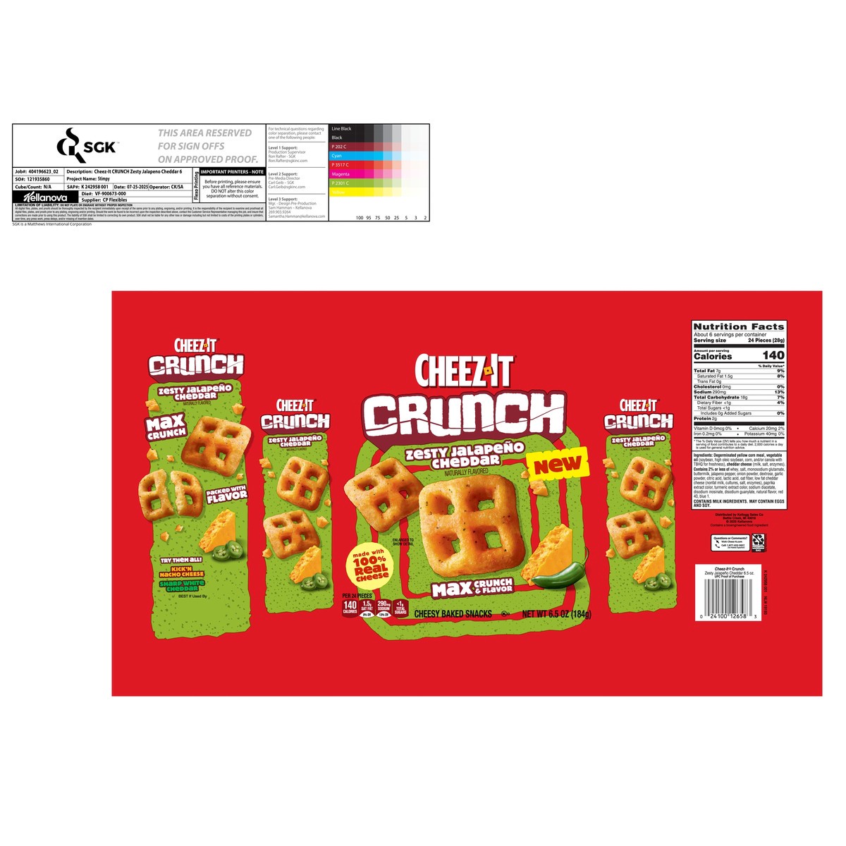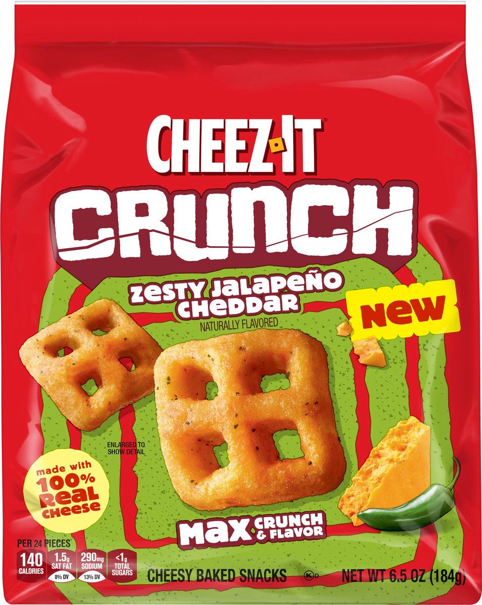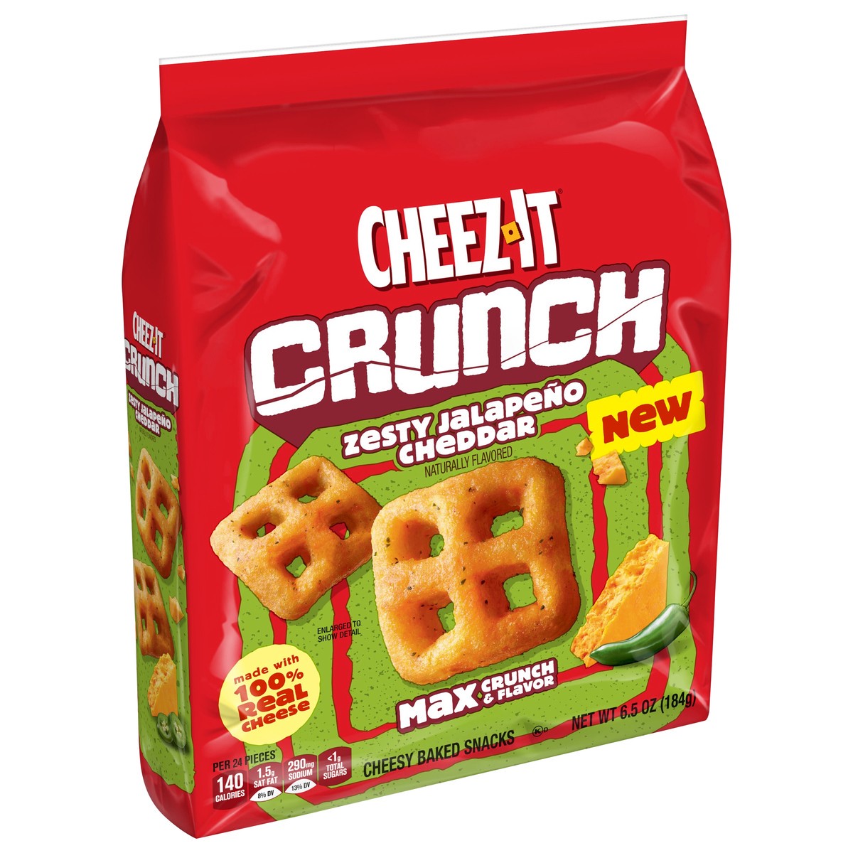 Make snack time more fun with the bold, spicy flavor and 3D crunch of Cheez-It Crunch Zesty Jalapeno Cheddar! These are the real deal, made with 100% real cheese in every bite. A baked snack, Cheez-It…