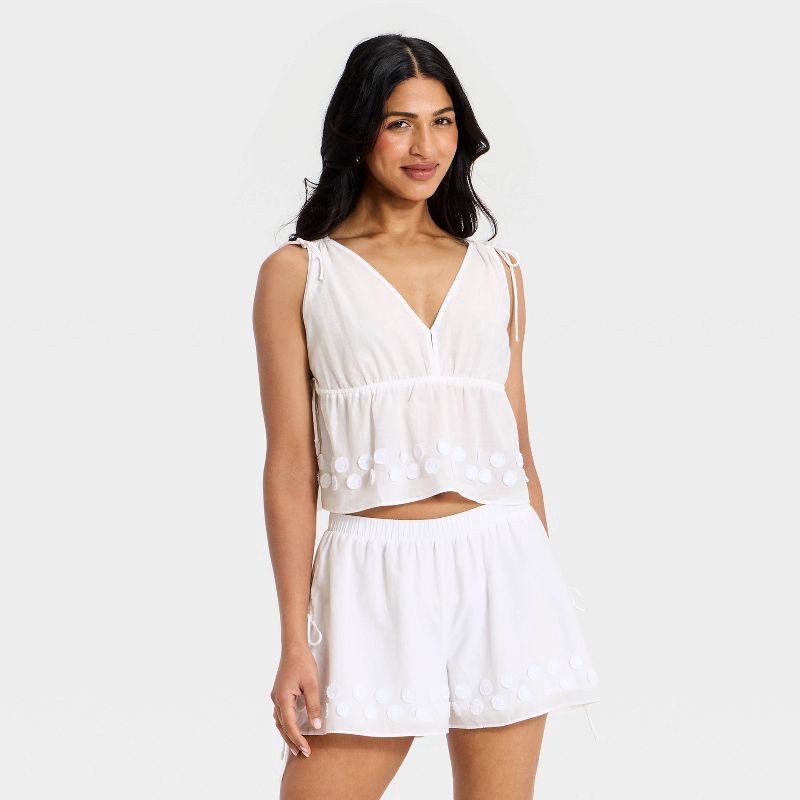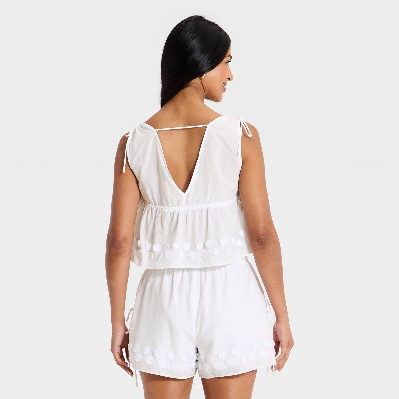 Women's Beachy Keen V-Neck Tie Top - A New Day™ White S