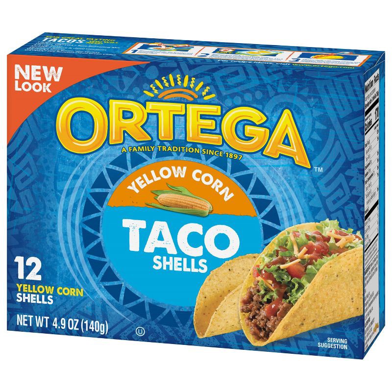 - One 4.9 ounce box of 12 Ortega Yellow Corn Taco Shells