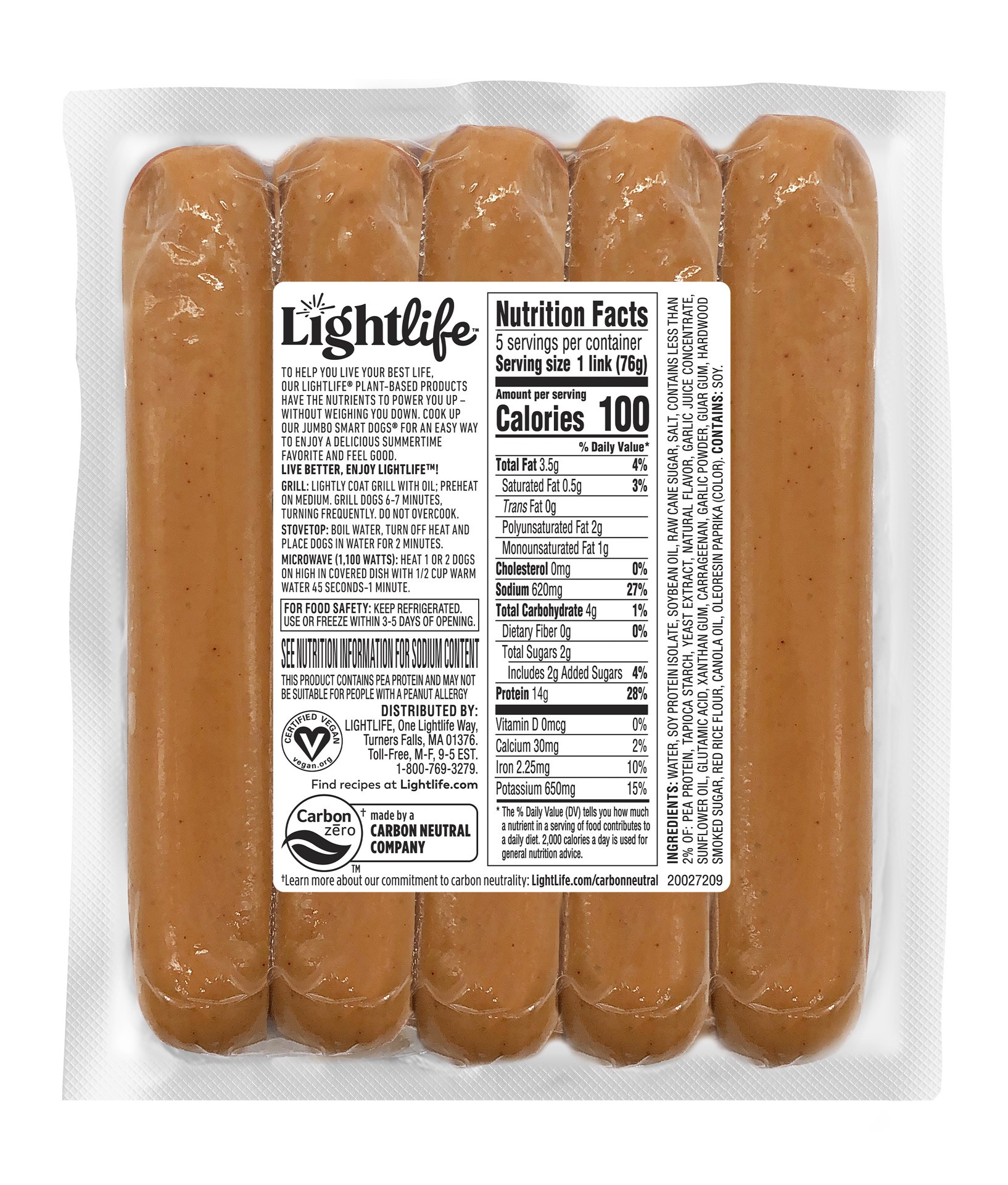 Enjoy a plant-based twist on a summertime classic with Lightlife Smart Dogs Vegan Jumbo Hot Dogs. Made with plant-based ingredients and an extra-large size that''s perfect for barbecues and big appeti…