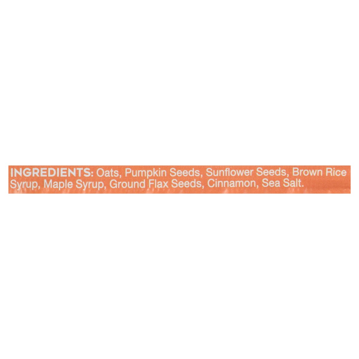 88 Acres Seed Blend (organic Sunflower Seeds, Organic Pumpkin Seeds, Flax Seeds), Gluten-free Certified Oats, Brown Rice Syrup, Maple Syrup, Organic Cinnamon, Sea Salt.