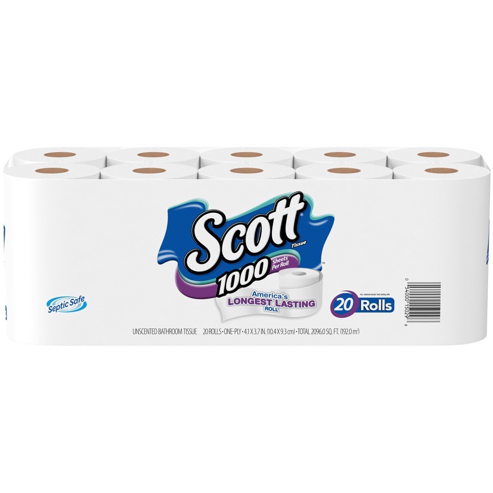 Each Scott 1000 Toilet Paper roll contains 1000 sheets. 1-ply bathroom tissue dissolves quickly, so it's sewer-safe and septic-safe. Safe for RV or boat use.