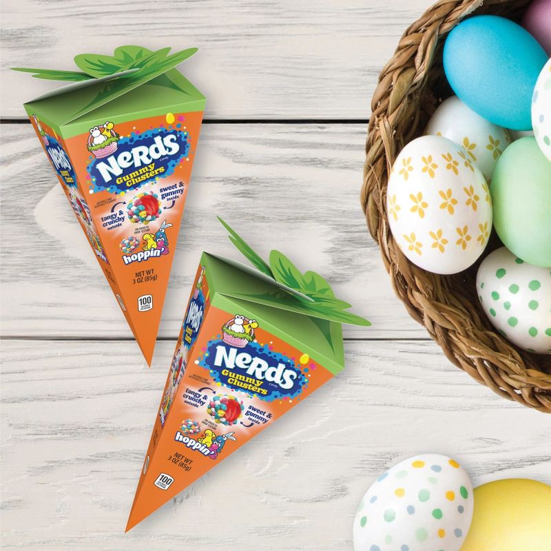 - POPS OF FLAVOR: Sweet little sparks of NERDS Gummy Clusters packed into an Easter Carrot make for a fun and tasty time. Enjoy this crunchy and gummy candy on its own or send it as an Easter gift. Experience a NERDStastic holiday with every bite!