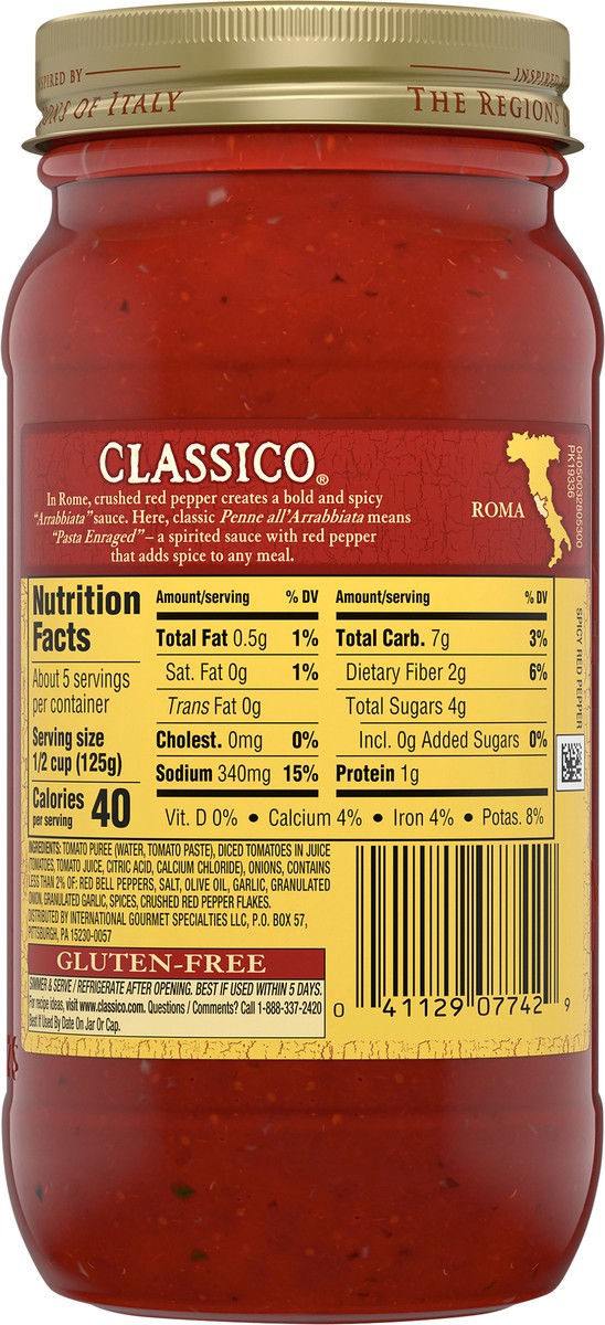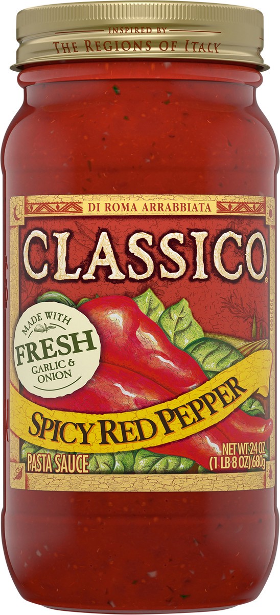 - One 24 oz jar of Classico Spicy Red Pepper Pasta Sauce