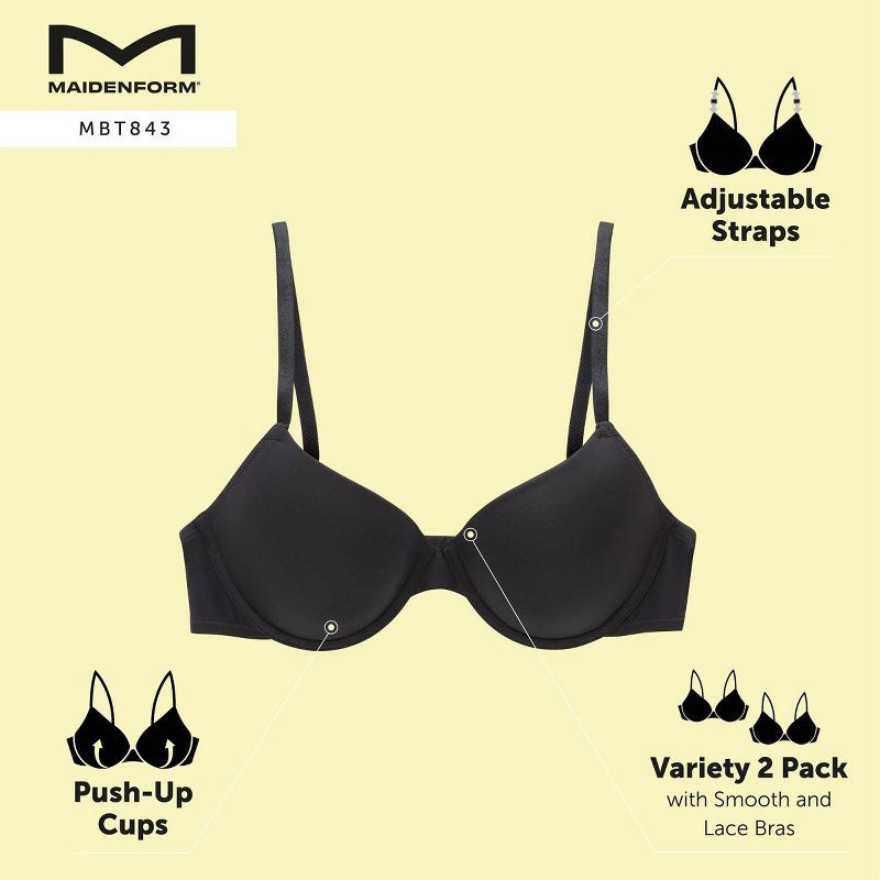 Maidenform Women's 2pk Push-Up Underwire Bra MBT843 - Black/Sandshell 34C: Padded, Adjustable Straps, Medium Coverage