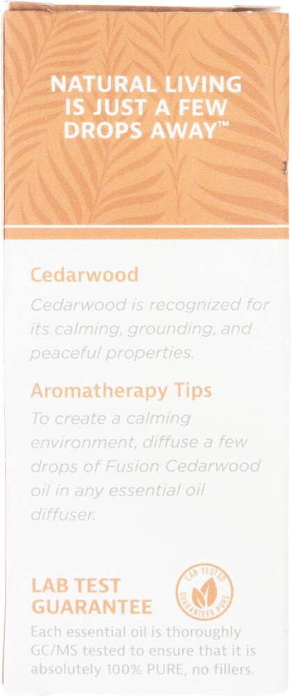 Fusion™ Cedarwood Essential Oil15 ml100% Pure Essential OilDispense aromatically in an oil diffuser to help create a refreshing environmentLab test guarantee. Each essential oil is thoroughly GC/MS te…