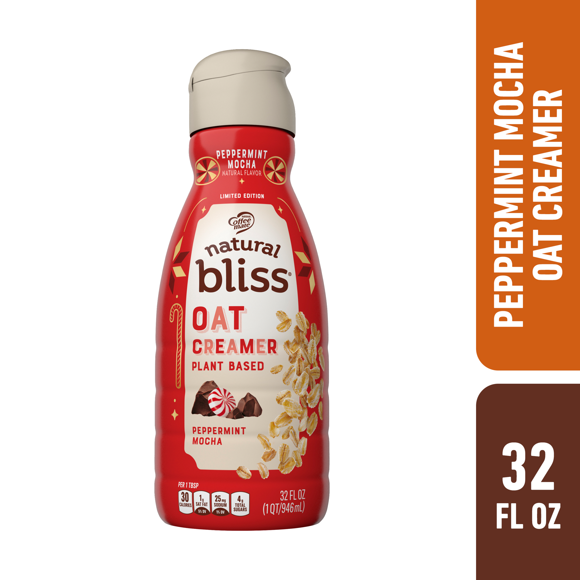 Coffee Mate Natural Bliss Peppermint Mocha Oat Milk Liquid Creamer Bottle - 32 Fl. Oz.