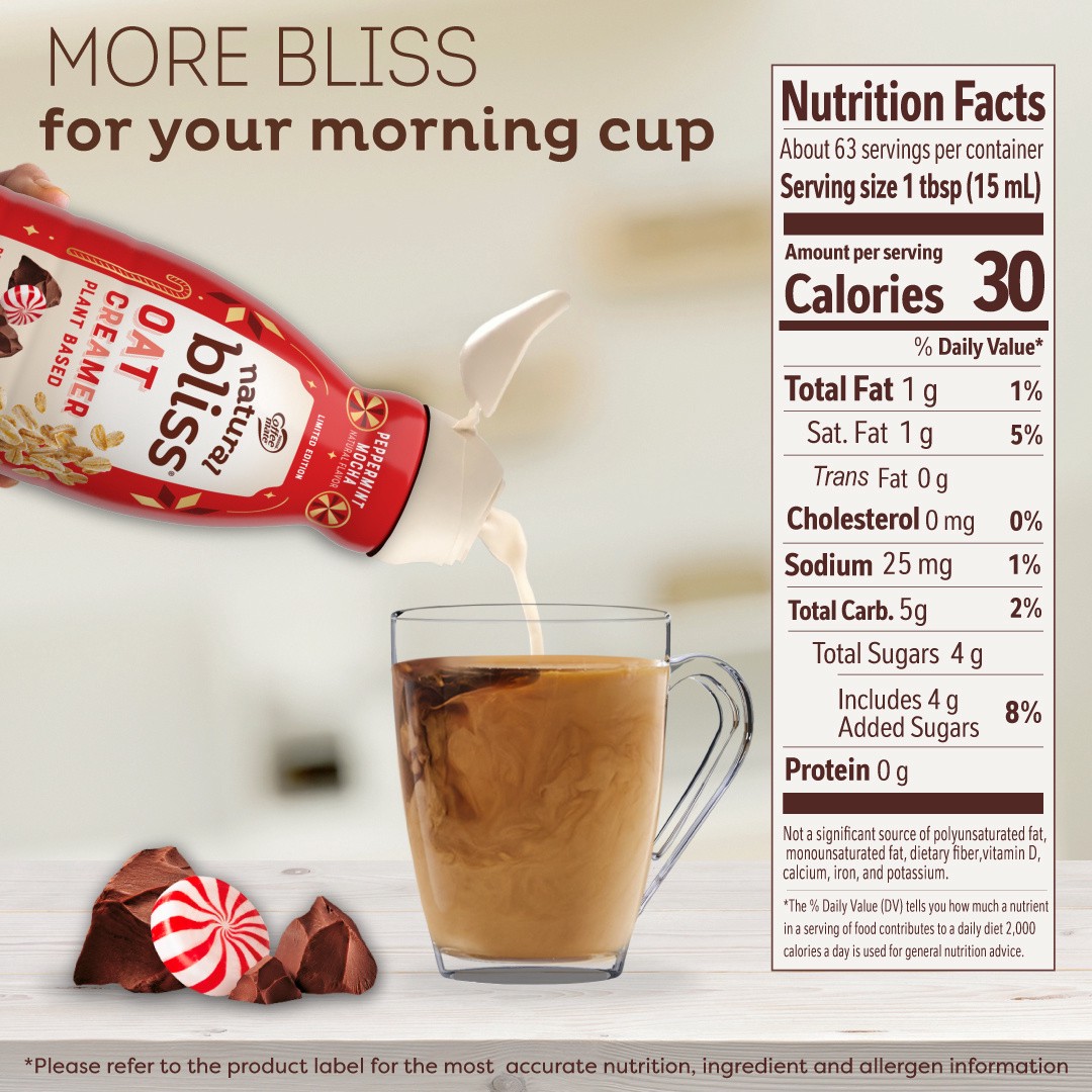 Kickstart your routine with Natural Bliss Peppermint Mocha Flavored Oat Milk Creamer Plant Based Liquid Coffee Creamer. This peppermint mocha flavored holiday coffee creamer adds delicious goodness to…