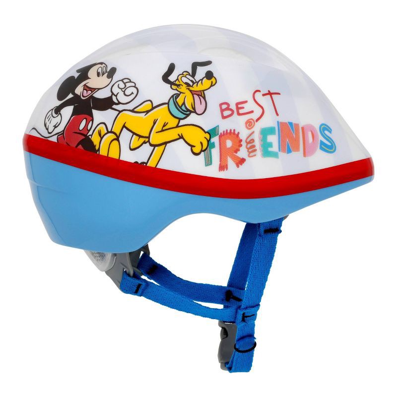 Your little rider will love to ride along with these best friends in this Disney Mickey Mouse bicycle helmet by Bell. Seven vents help keep heads cool, and a built-in visor helps shield eyes from the …
