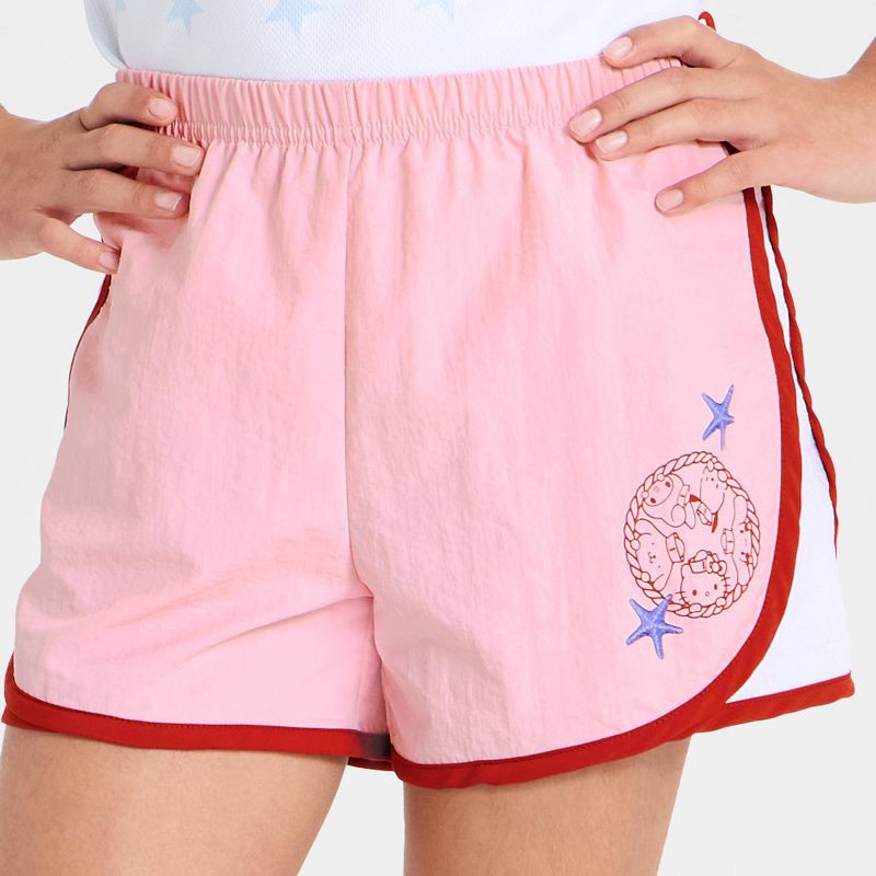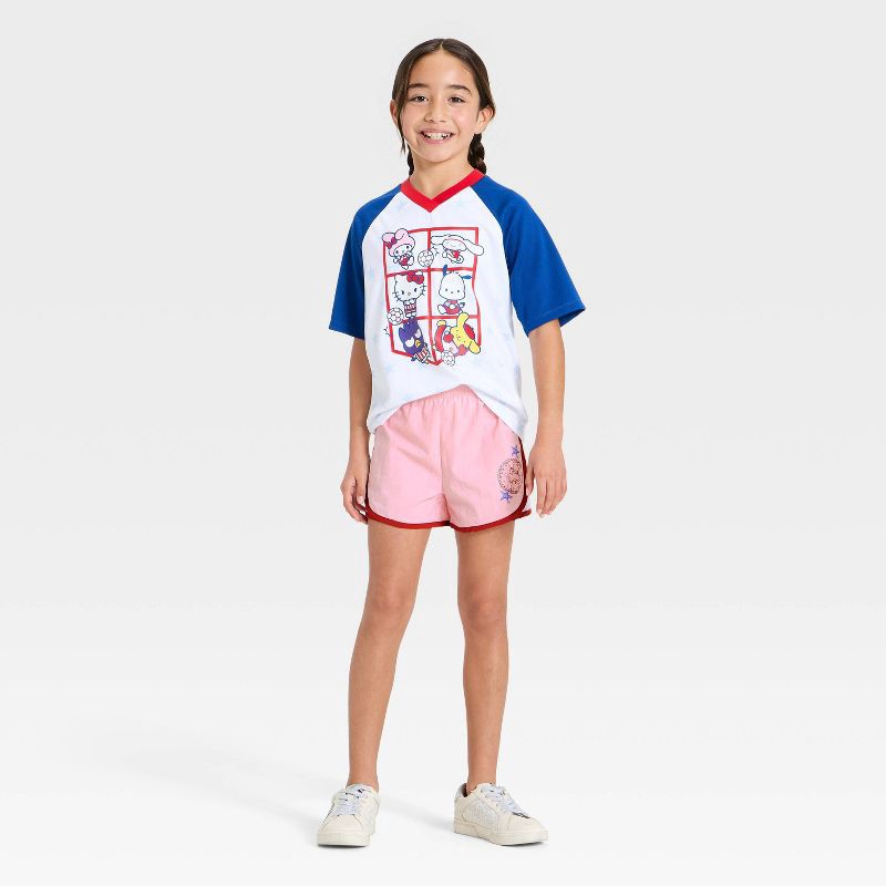 Infuse sweet Sanrio style into your child's casual wardrobe with these Hello Kitty and Friends Active Shorts. Crafted from lightweight 100% nylon, these light pink shorts are accented with red piping …