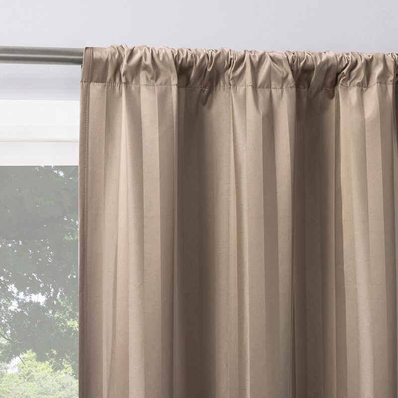 2pc 37"x63" Sun Zero Dimani Satin Striped 100% Blackout Rod Pocket Curtain Panel Pair Taupe: Energy Efficient, Noise Reduction