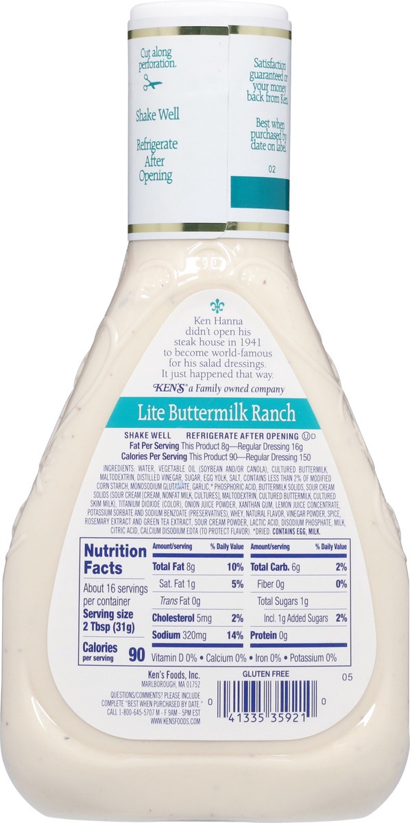 Kens Steak House Dressing Lite Buttermilk Ranch - 16 Fl. Oz.