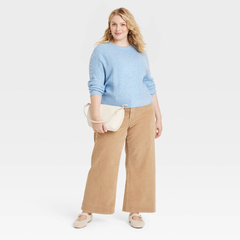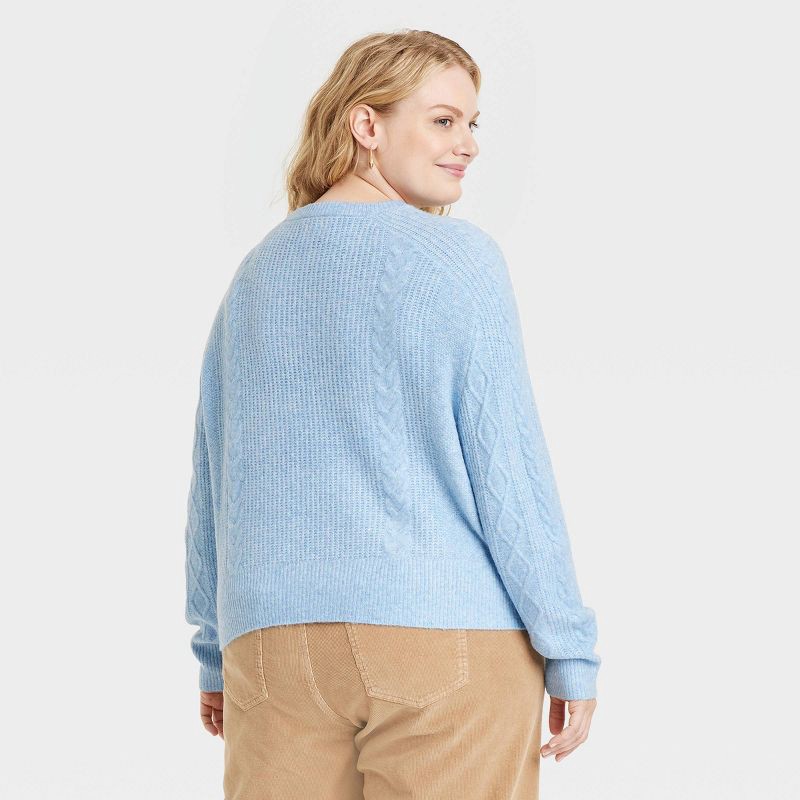 Embrace sweater weather with this Crewneck Cashmere-Like Cable Pullover Sweater from Universal Thread™. This pullover sweater is fashioned in a solid shade with a classic cable pattern and features ri…