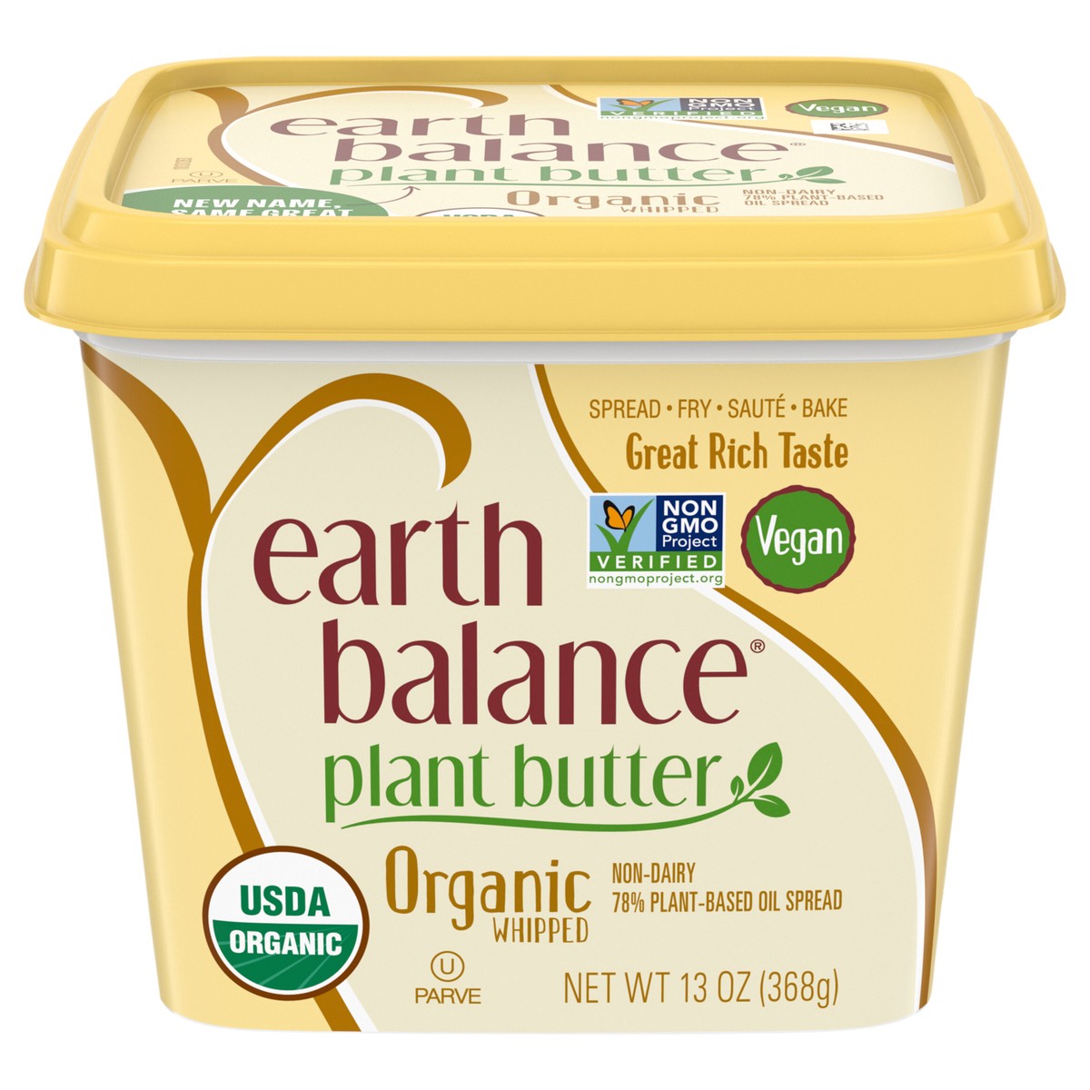 - What You Get: One 13-oz. tub of Earth Balance Plant Butter Organic Whipped Plant Based Oil Spread