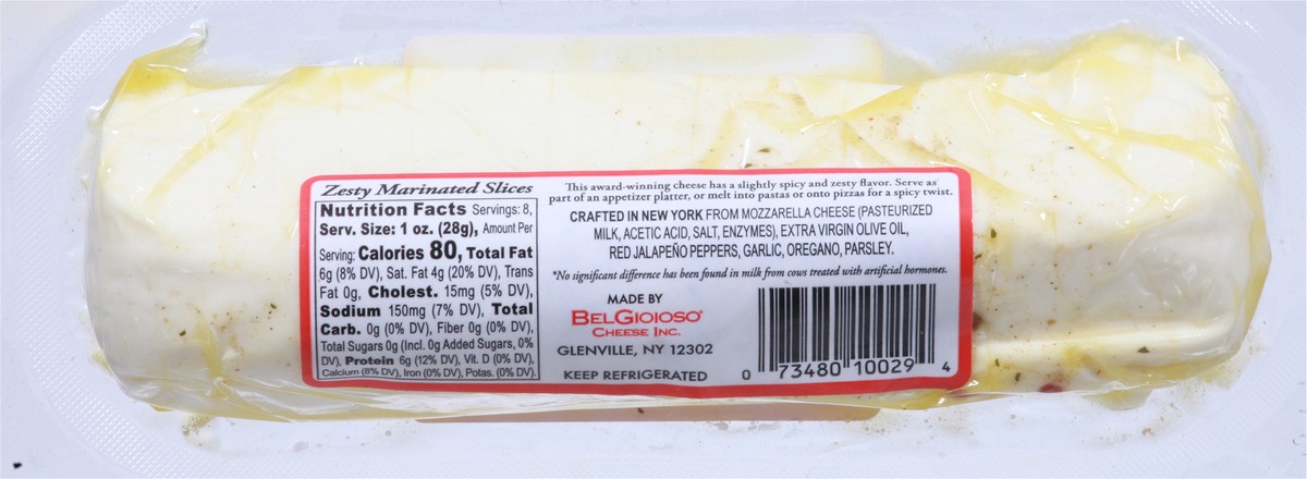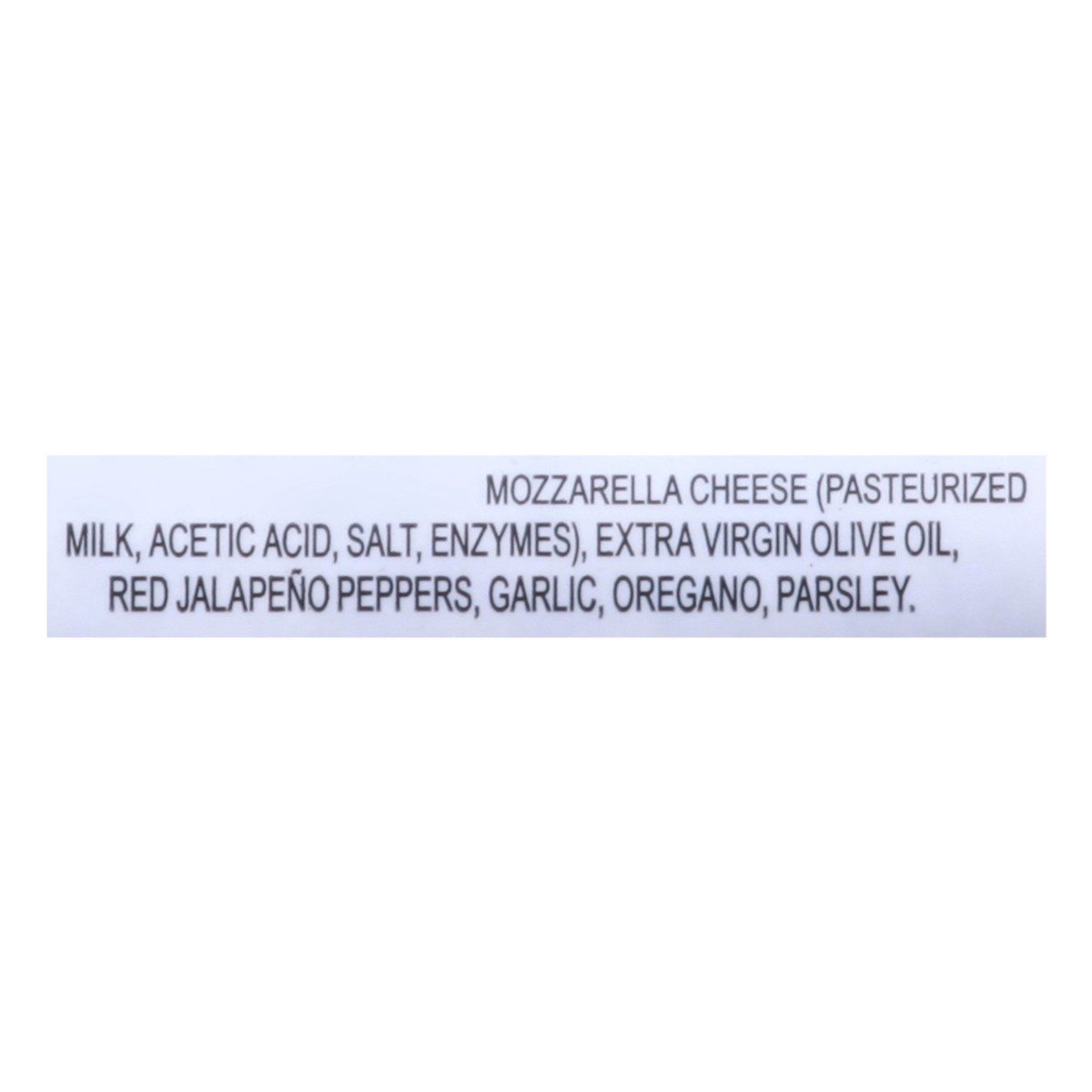Crafted in New Work from Mozzarella Cheese (Pasteurized Milk, Acetic Acid, Salt, Enzymes), Extra Virgin Olive Oil, Red Jalapeno Peppers, Garlic, Oregano, Parsley.