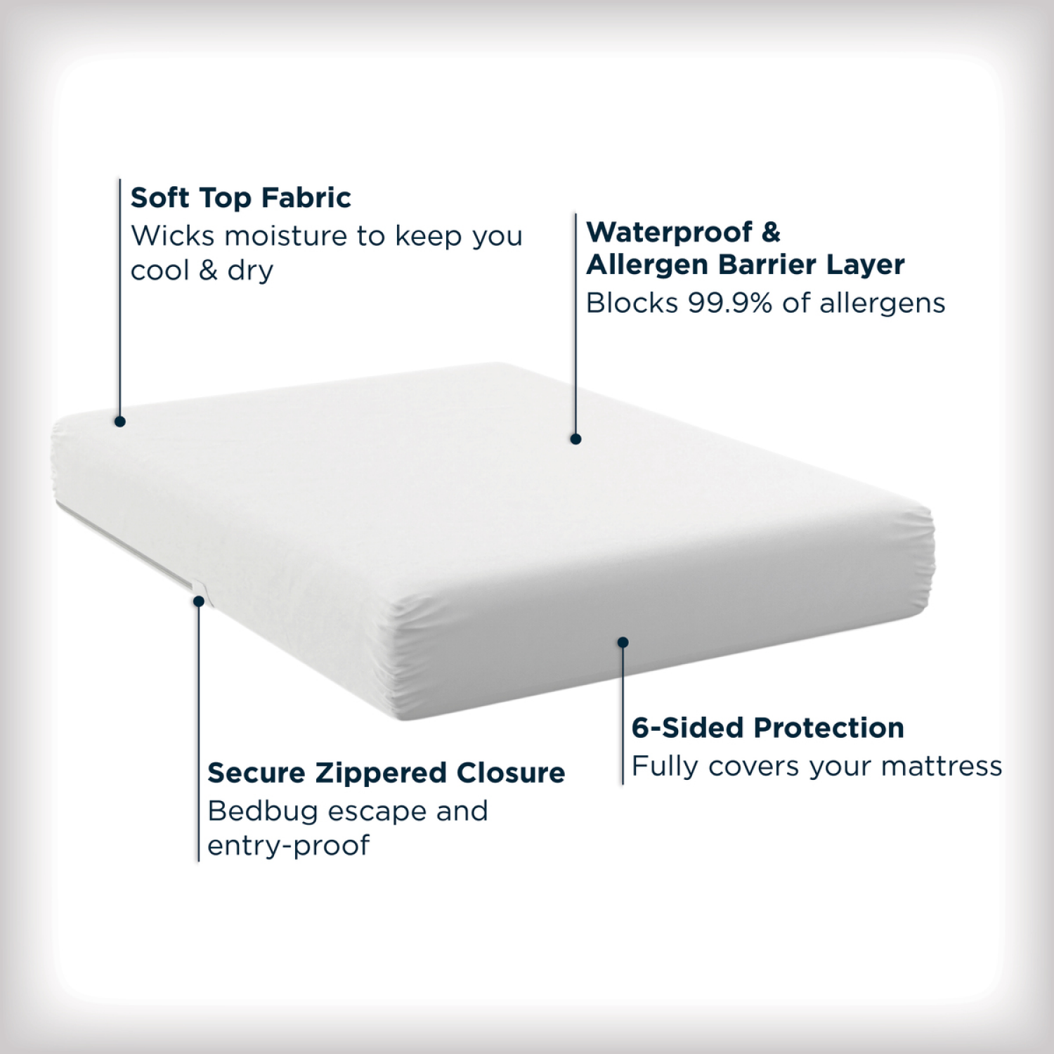 The AllerEase Maximum Allergy and Bedbug Mattress Protector provides protection from dust mites, pollen, bed bugs, pet dander and other household allergens that can trigger allergies. This six-sided m…