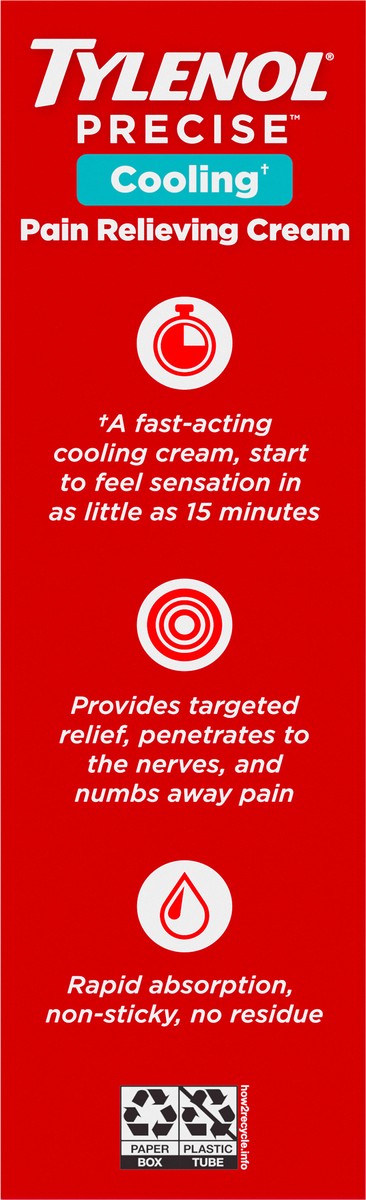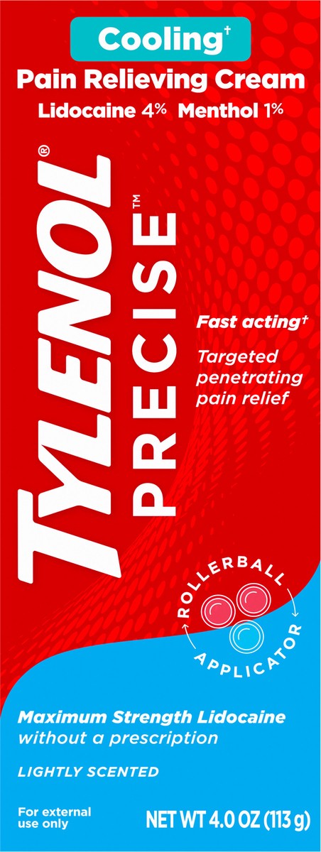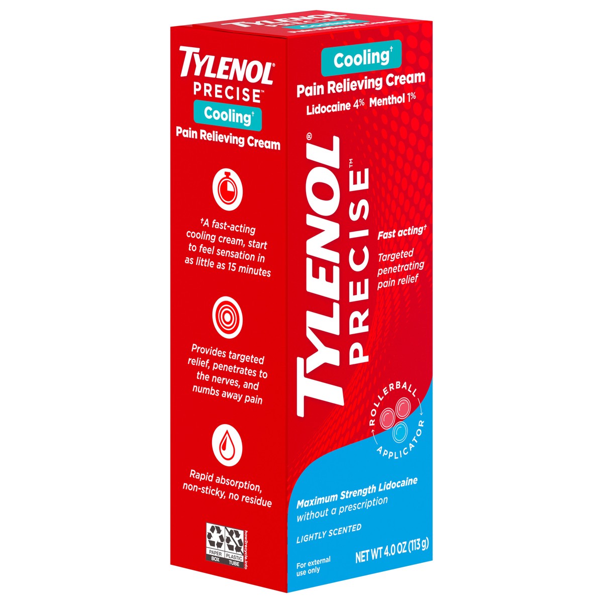 Tylenol Precise Cooling Pain Relieving Cream provides penetrating pain relief to help numb minor joint and muscle soreness. Formulated with maximum strength combination of lidocaine and menthol withou…