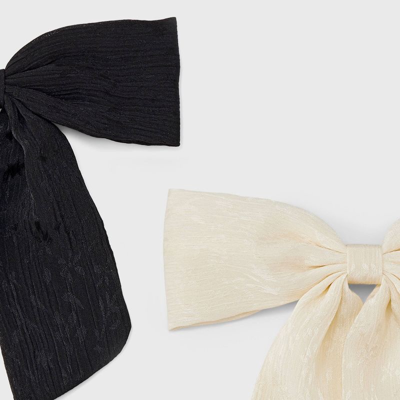 Pleated Satin Bow Barrette Set - A New Day™ Black