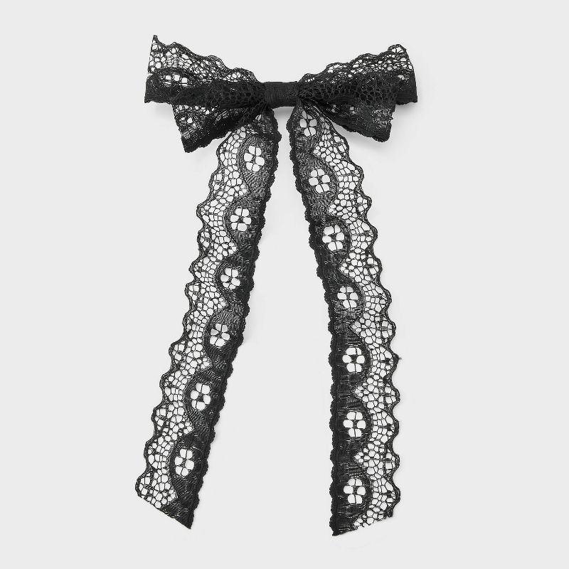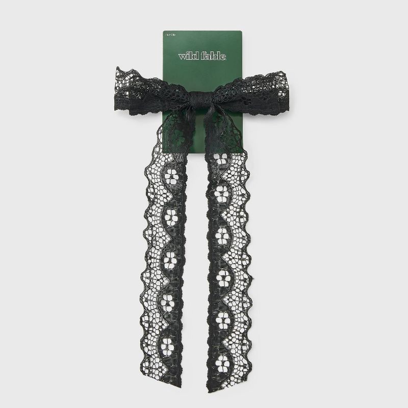 Longtail lace bow barrette from Wild Fable™. Features a black lace bow featuring long, flowing tails. Perfect for securing and styling hair and suitable for all hair types.If you're not satisfied with…