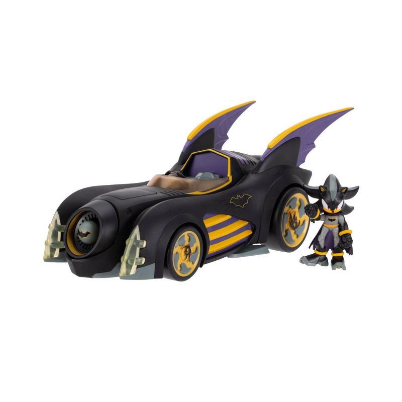 Race into action with this Batmobile that has been Shadow-fied! With Shadow as Batman at the wheel, this Batmobile, inspired by the DC x Sonic the Hedgehog hit crossover comic book series, features de…