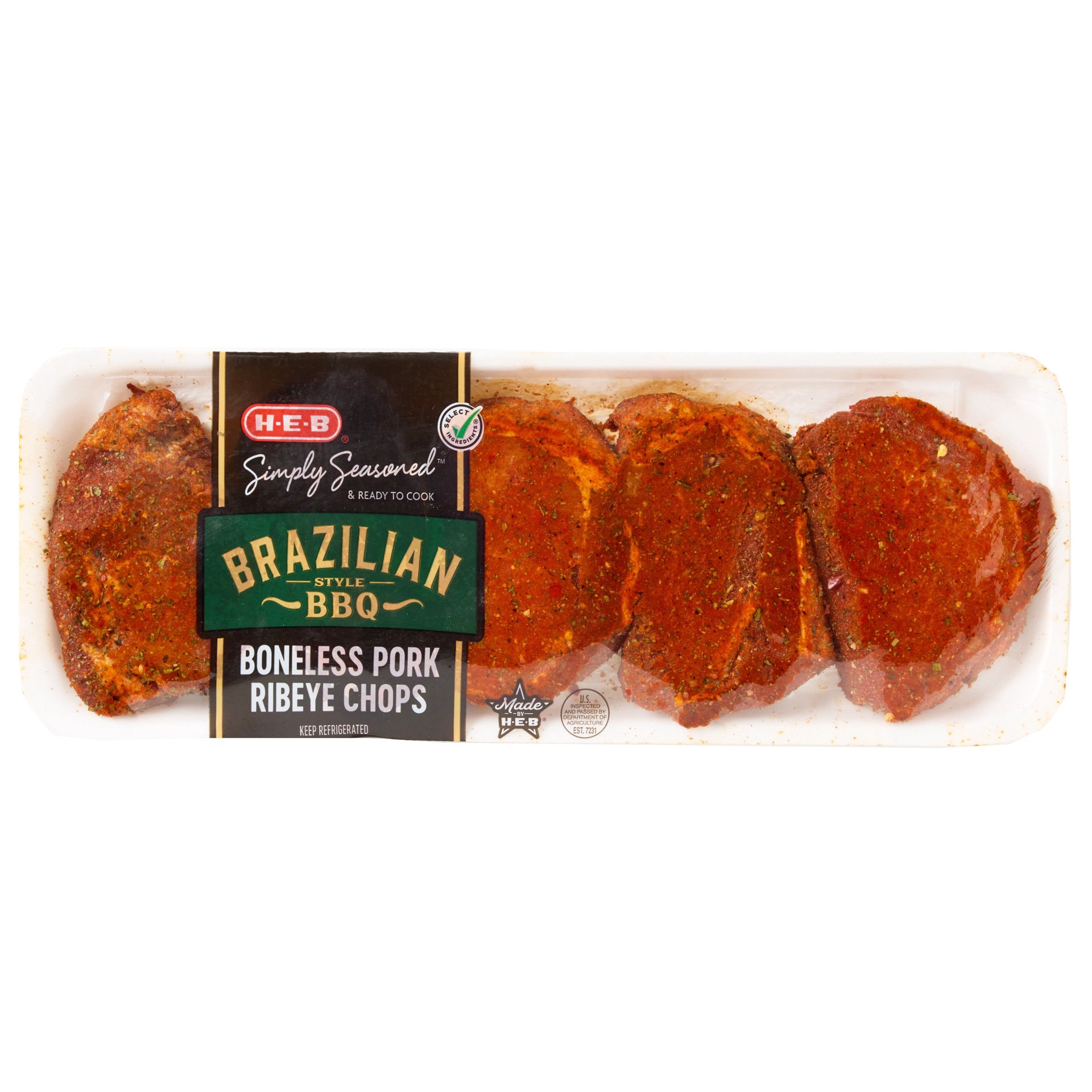 H-E-B Simply Seasoned Boneless Pork Ribeye Chops - Brazilian Style BBQ