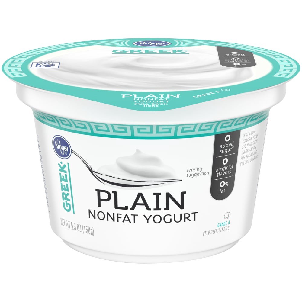 Kroger® Plain Nonfat Greek Yogurt Cup delights with every spoonful! Savor the fact this yogurt contains probiotics & other active cultures, as well as 15g protein in this cup. Relish its delicious tas…