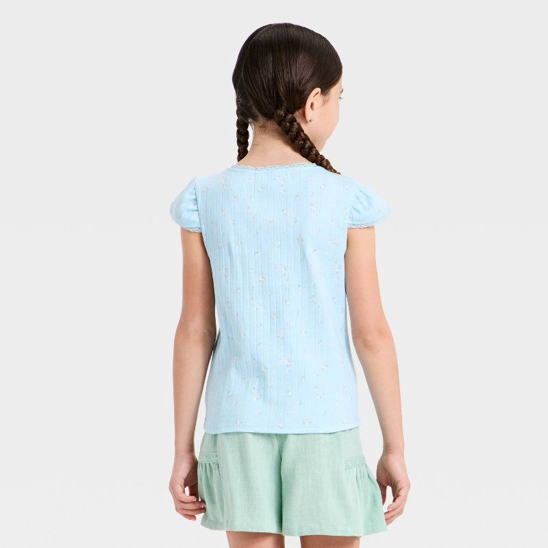 Girls' Flutter Short Sleeve Floral Knit T-Shirt - Cat & Jack™ Light Blue L