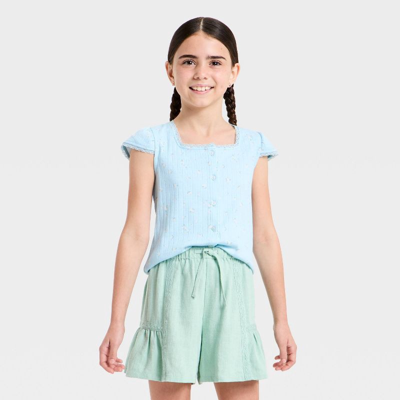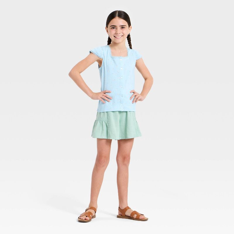 They'll be stepping out in summery style with the Flutter Sleeve Knit Button Top from Cat & Jack™. Made from 100% cotton knit pointelle fabric for all-day comfort and sweet texture, this top features …