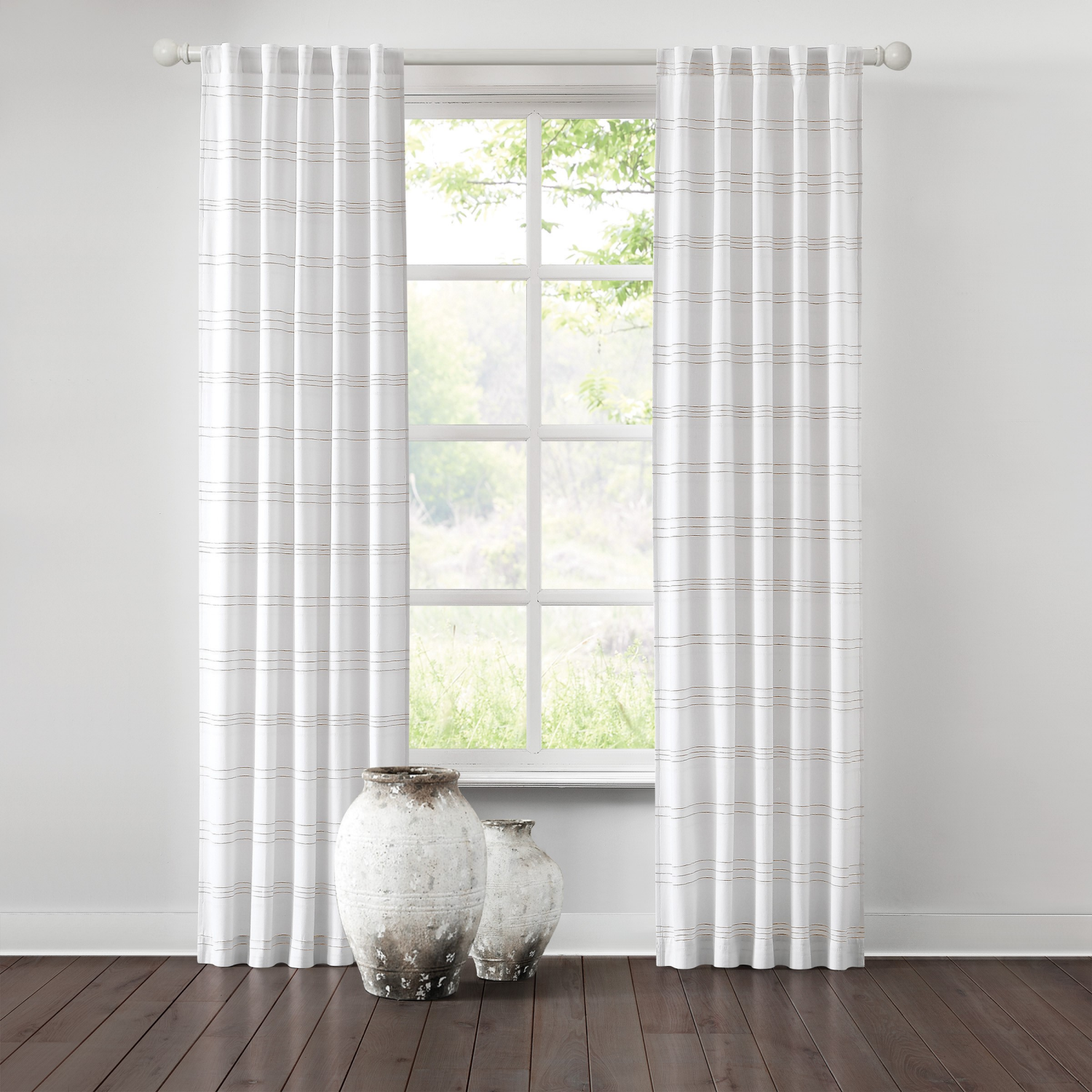 Add a touch of sophisticated ambiance with Rachel Ashwell Gwinn panels. It's baratta stitch design is constructed of cotton/polyester. The rod pocket/back tabs allow 2 hanging options. Machine washabl…