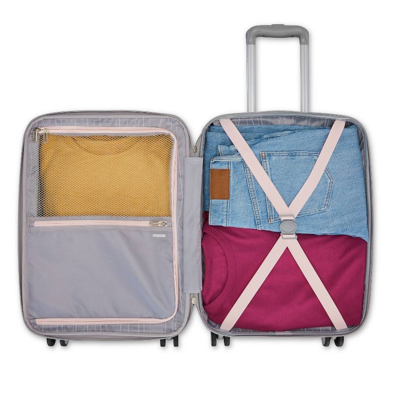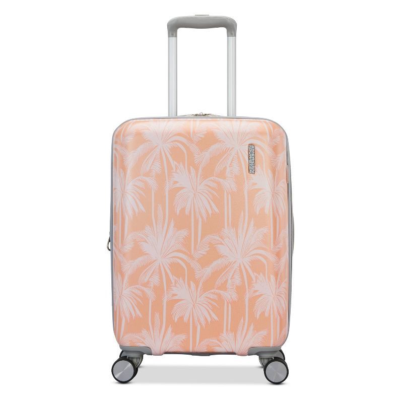 American Tourister Modern Hardside Carry On Spinner Suitcase - Coral Palms: Botanical 4-Wheeler, ABS Shell