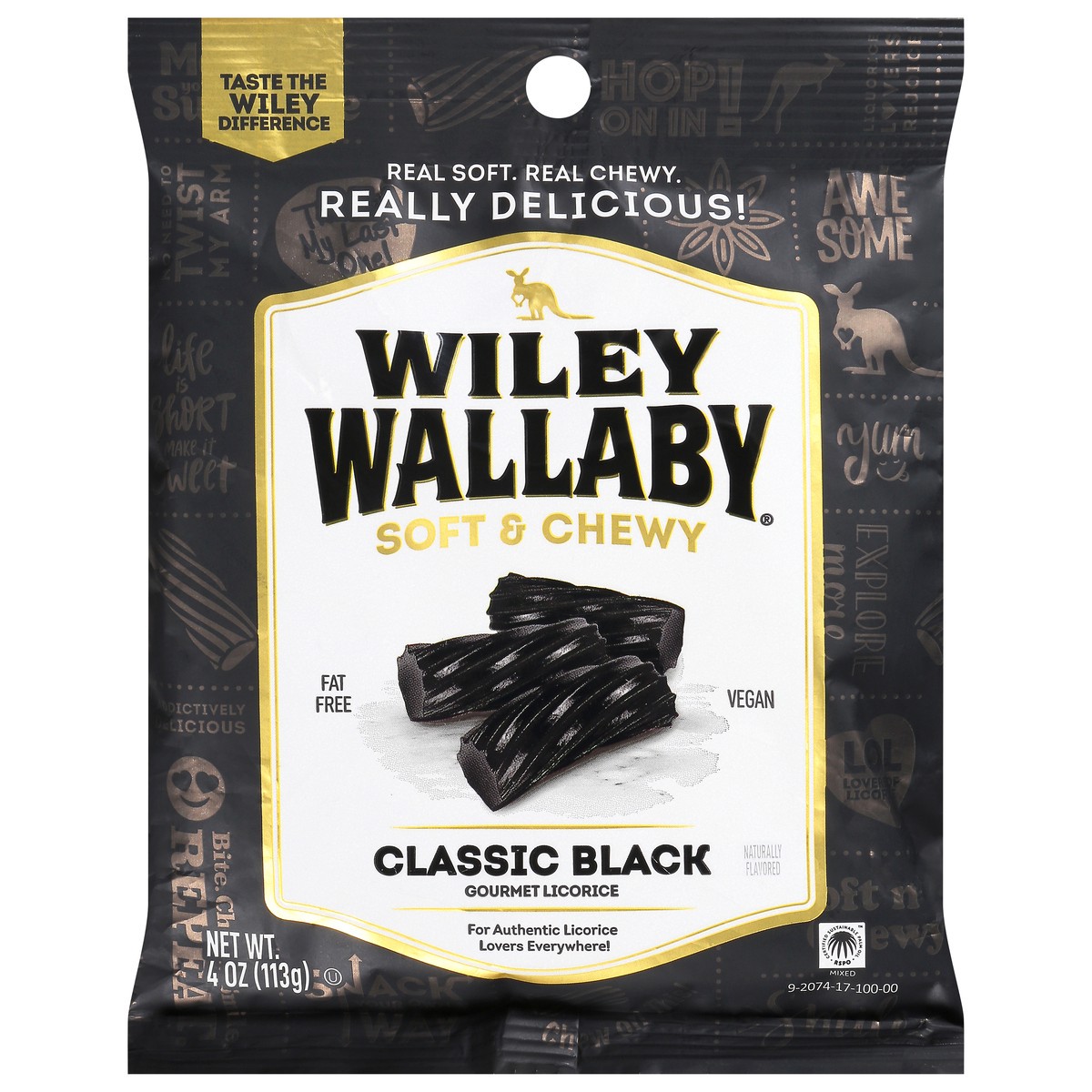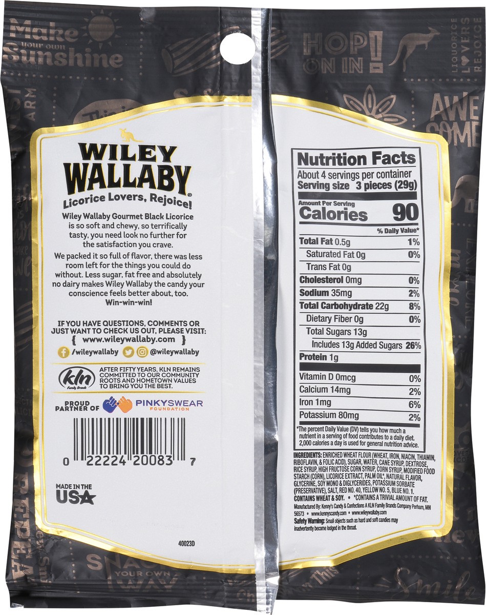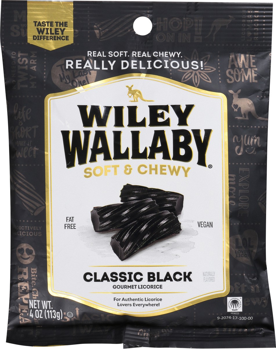Taste the Wiley difference! Enjoy classic black licorice with this soft and chewy batch from Wiley Wallaby. Made with sustainable palm oil, this gourmet candy is great for authentic licorice lovers ev…