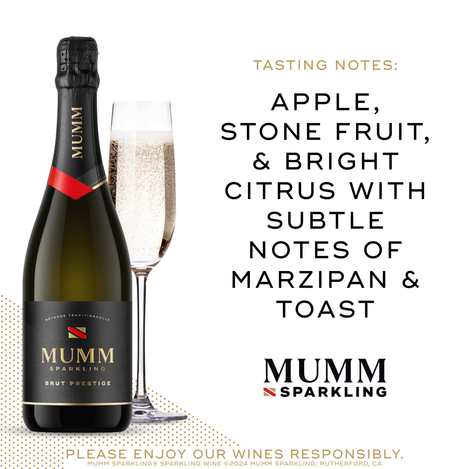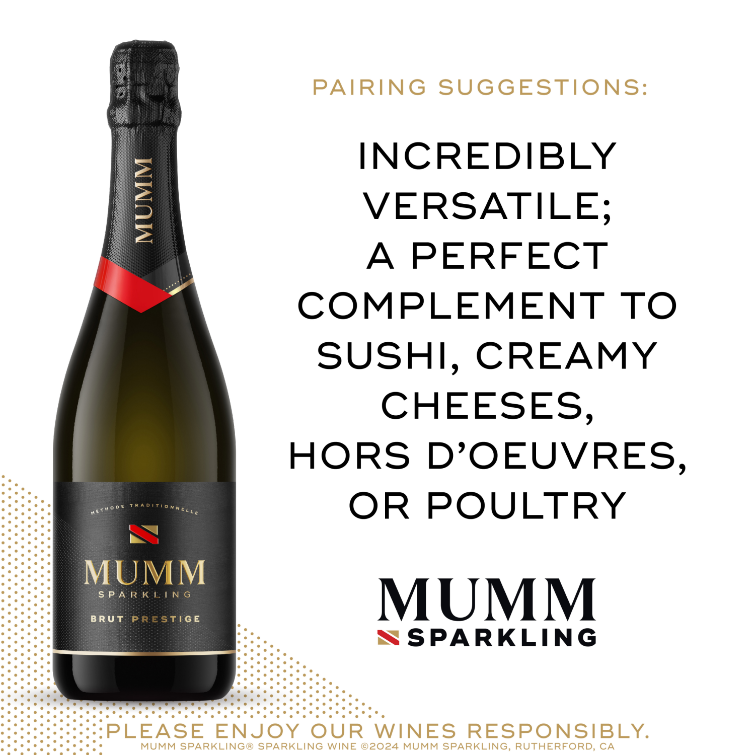 Enjoy the superior, top-rated taste of Napa grapes in Mumm Napa Brut Prestige. Widely versatile, this signature sparkling pairs perfectly with a variety of foods