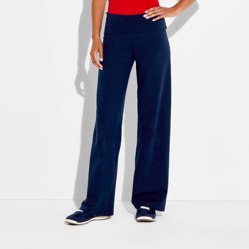 Straight-leg pull-on pants from Wild Fable™ with a low-rise cut and standard fit. Feature a foldover waistband for a stay-put fit. Crafted from midweight cotton jersey fabric with spandex for comforta…