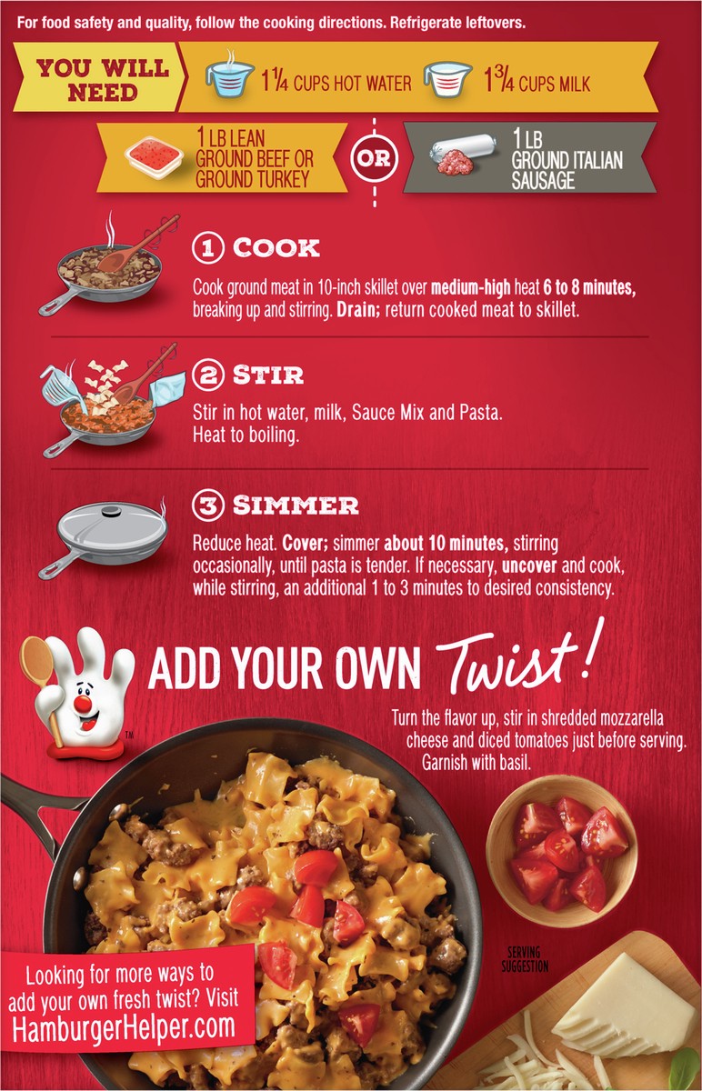 - ENDLESS OPTIONS: Add your own twist with additional ingredients and head to the Betty Crocker website for Hamburger Helper recipes and pastas the whole family will love