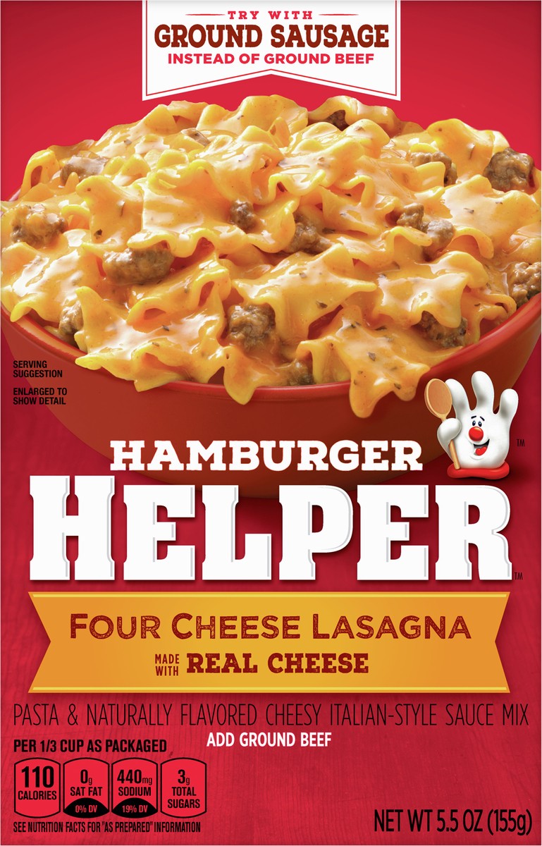 - PASTA: America''s favorite Hamburger Helper in a super cheesy lasagna entree, blending pasta and Italian-style sauce mix