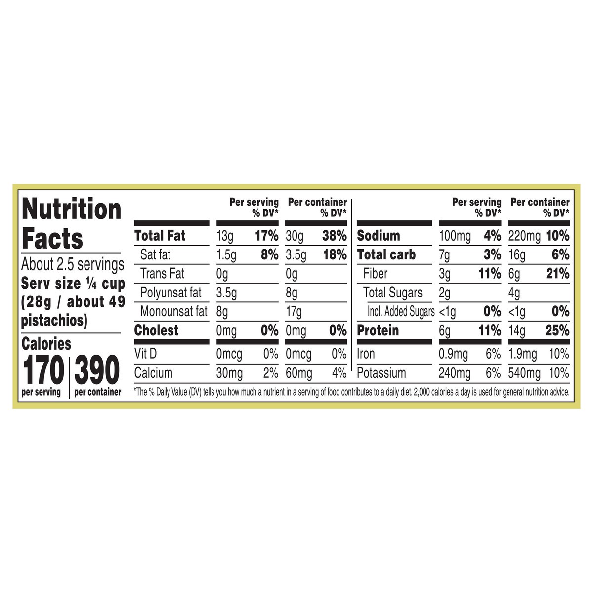 Pistachios, Sunflower Oil, Sea Salt, Vinegar, Sugar, Yeast Extract, Natural Flavor, Garlic Powder, Onion Powder, Citric Acid, Dill, Dill Oil.
