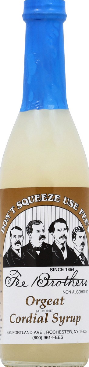 Non alcoholic. For mixed drinks. Topping desserts. Flavoring coffee. Don't squeeze use Fee's. Since 1864. Orgeat, an almond flavored milky colored syrup, is also know as Orchatta or Orzata. Use it to …