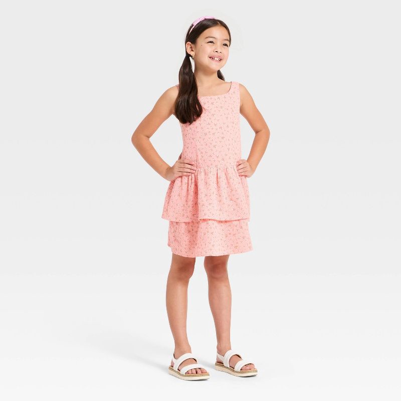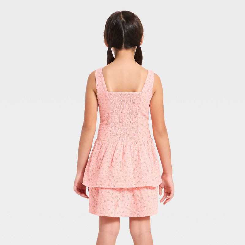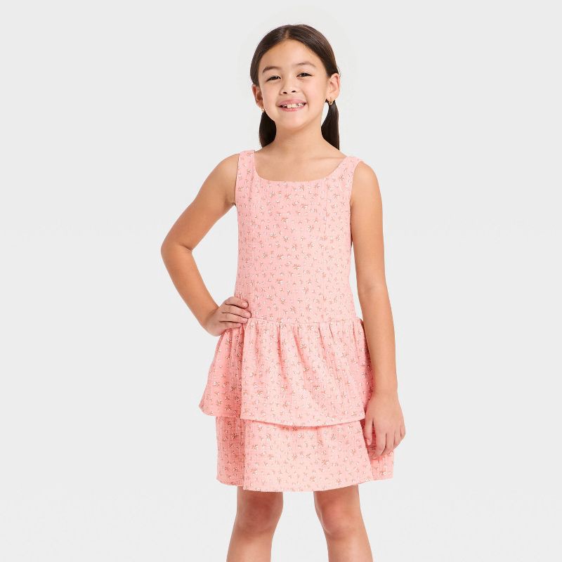 Add a sweet touch to their warm-weather wardrobe with this Sleeveless Drop Waist Tiered Floral Dress from Cat & Jack™. Made from cotton gauze fabric with a polyester full lining for comfortable wear, …