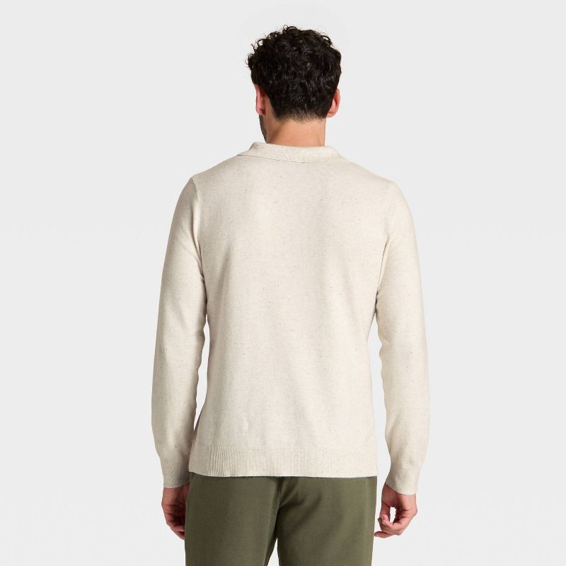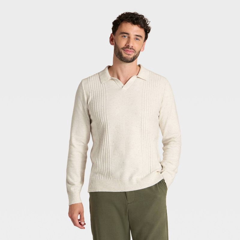 Style meets comfort in this Soft Knit Johnny Collar Polo Sweater from Goodfellow & Co™. Made from a fabric blend of cotton, nylon, and recycled polyester, this long-sleeve sweater adds a touch of soph…