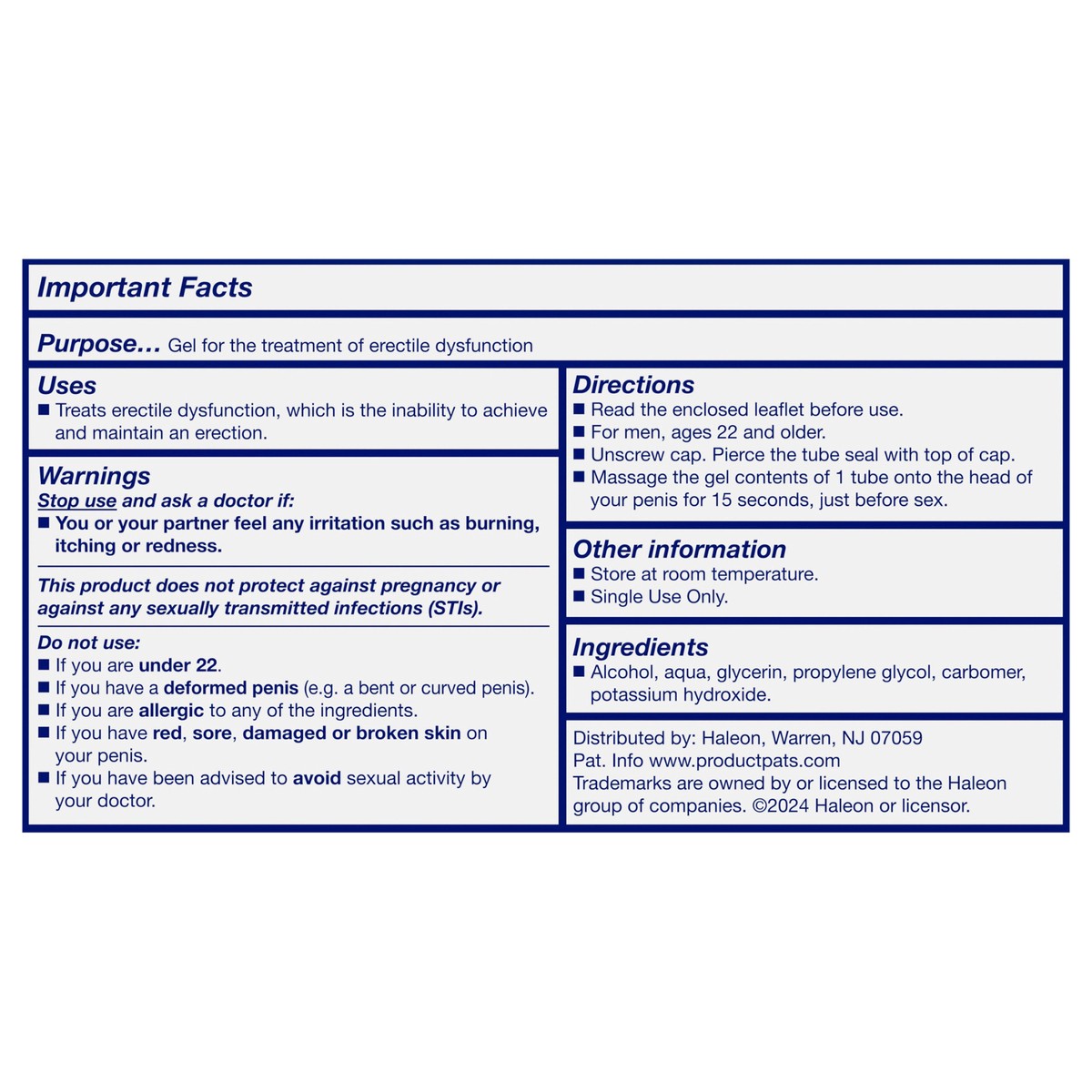 Inactive Ingredients: Alcohol, Aqua, Glycerin, Propylene Glycol, Carbomer, Potassium Hydroxide.