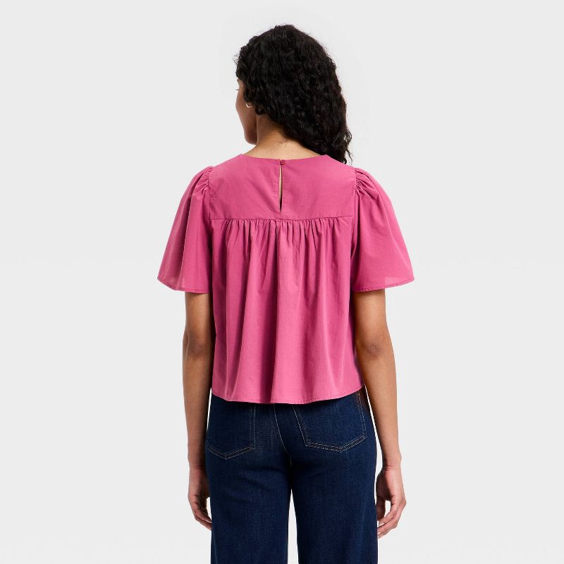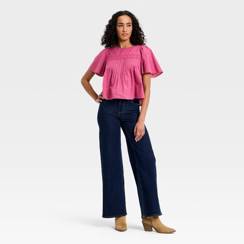 Make a stylish statement with this Short-Sleeve Lace Pintuck Blouse from Universal Thread™. Made of 100% cotton for all-day comfort, this blouse features pintuck and lace detailing on the front for an…