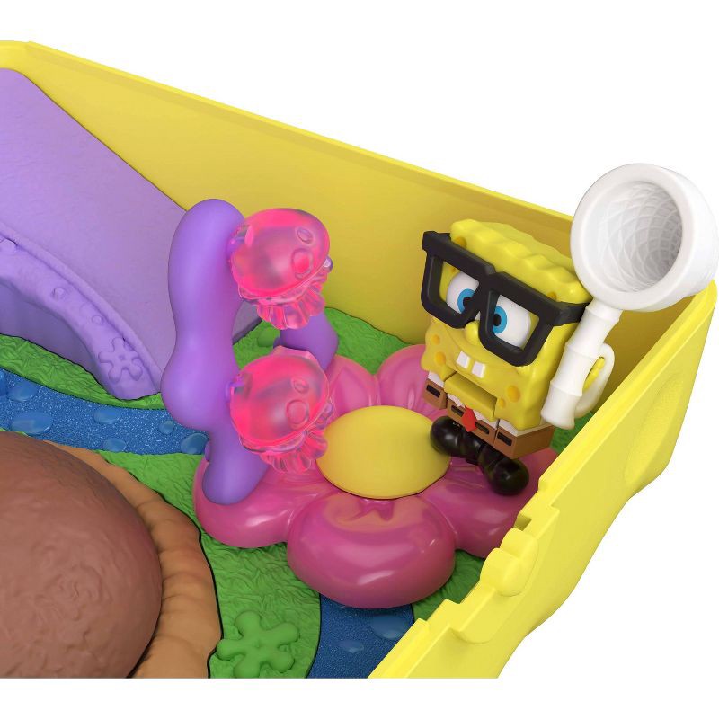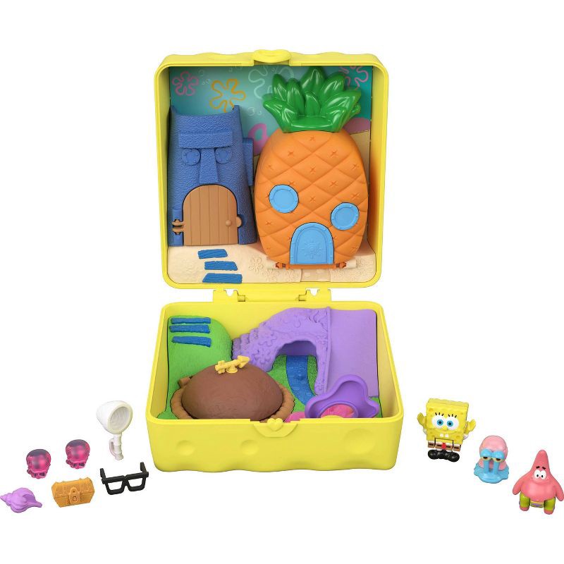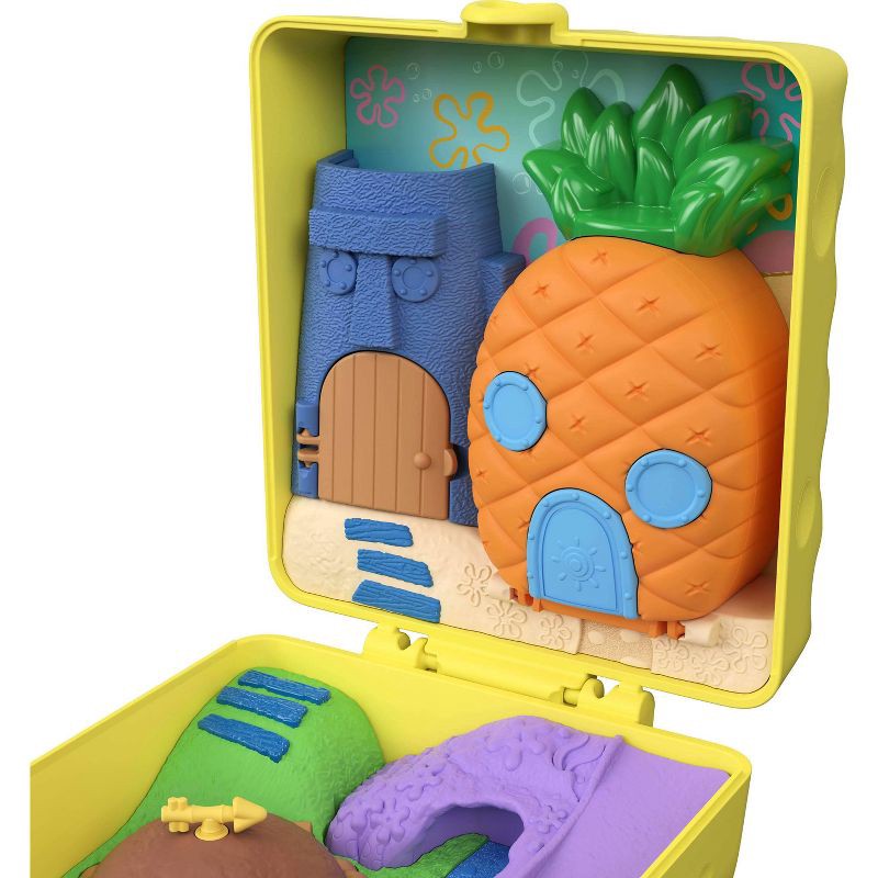 Bikini Bottom goes tiny with Polly Pocket in this partnership compact! The SpongeBob SquarePants-themed compact opens to iconic locations like SpongeBob's pineapple, Squidward's house, and Patrick's r…