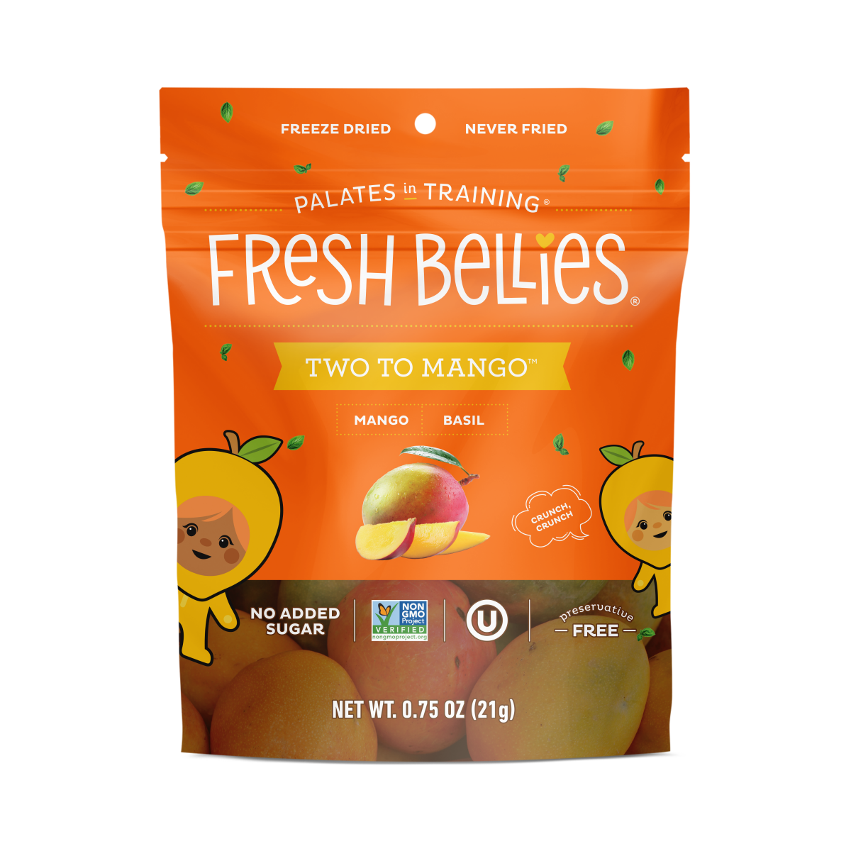 Two to Mango? Tangy mango meets sweet basil in this healthy snack that packs an irresistible crunch! YES, the green specs/powder on the mango and in the bag is BASIL! We help your child?s palate grow …