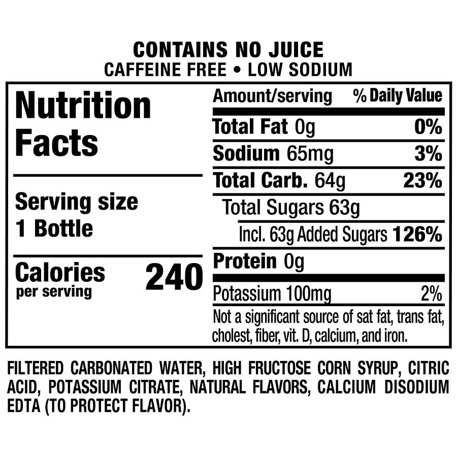 Filtered Carbonated Water, High Fructose Corn Syrup, Citric Acid, Potassium Citrate, Natural Flavors, Calcium Disodium EDTA (to Protect Flavor).