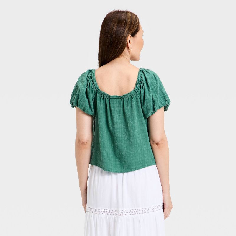 Women's Puff Short Sleeve Blouse - Universal Thread™ Green XL